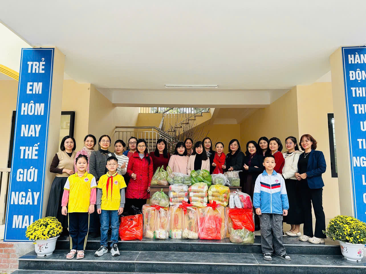 Nhà trường đã trao tặng những phần quà xuân thiết thực như: giò, gà luộc, miến, mì tôm, đồ gia dụng… với mong muốn mang đến cho các em nhỏ tại trung tâm một mùa xuân ấm áp, đủ đầy và tràn ngập yêu thương.