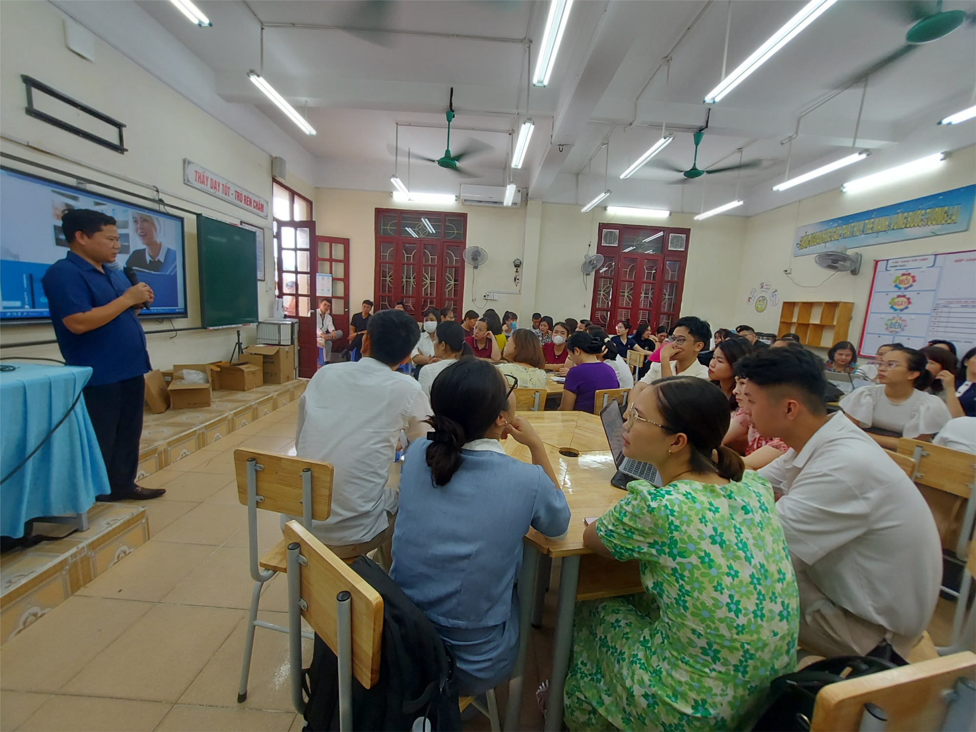 Nhằm quản lý, sử dụng hiệu quả lớp học thông minh tại các trường học, ngày 11/7/2024, Phòng GD&ĐT quận Hải An phối hợp với đơn vị cung ứng - Công ty Công nghệ Trọng Tín tổ chức tập huấn nghiệp vụ vận hành, sử dụng các thiết bị lớp học thông minh cho đội ngũ cán bộ quản lí, giáo viên các trường Tiểu học, THCS trên địa bàn quận.