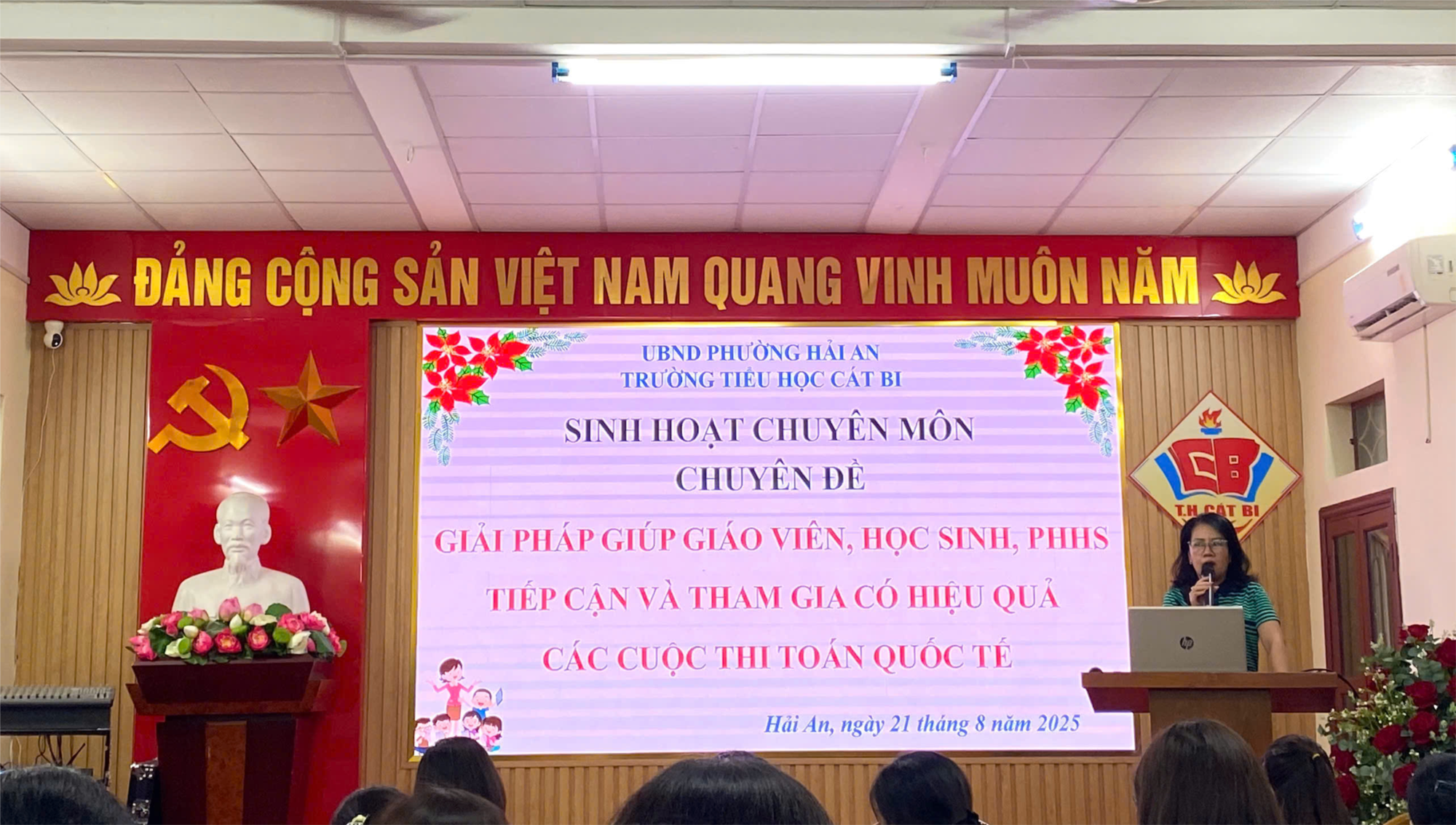 Ngày nay, theo Chương trình Giáo dục phổ thông 2018, học sinh giữ vai trò trung tâm, giáo viên là người định hướng và tổ chức hoạt động học tập. Bên cạnh đó, việc học sinh có cơ hội tham gia các cuộc thi qua mạng không chỉ khơi dậy hứng thú học tập mà còn góp phần phát triển năng lực, phẩm chất toàn diện. Xuất phát từ yêu cầu đó, sáng ngày 21/8/2025, Trường Tiểu học Cát Bi đã tổ chức buổi sinh hoạt chuyên môn với chuyên đề: “Giải pháp giúp giáo viên, học sinh tiếp cận và tham gia hiệu quả các cuộc thi quốc tế”.