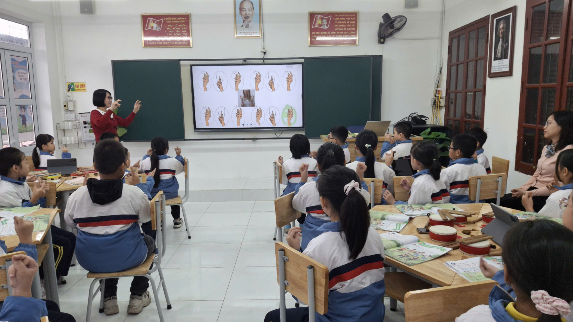 Minh họa cho chuyên đề là tiết dạy của cô Nguyễn Thị Thúy Hằng và các em học sinh lớp 3A1 với chủ đề “Em yêu làn điệu dân ca”. Trong tiết học, các em đã được ôn tập bài hát “Khúc nhạc trên nương xa”; thể hiện các hình tiết tấu bằng nhạc cụ gõ. Bài dạy được cô giáo Hằng chuẩn bị chu đáo, sử dụng linh hoạt các hình thức và phương pháp dạy học, kết hợp hiệu quả với việc ứng dụng công nghệ thông tin tại phòng học thông minh vào giảng dạy. Tiết học không chỉ giúp phát triển kỹ năng, năng lực mà còn khơi dậy năng khiếu về Âm nhạc của học sinh.
