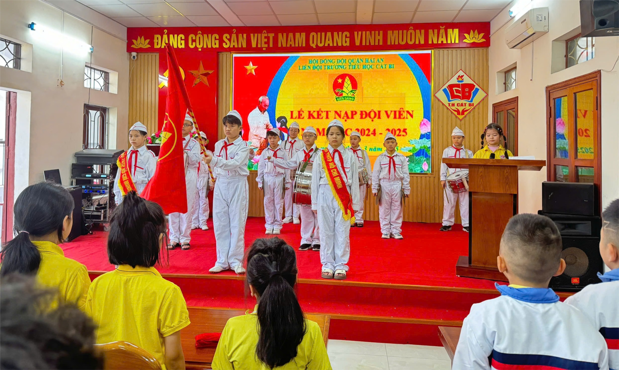 Thực hiện chương trình công tác Đội và phong trào thiếu nhi năm học 2024 – 2025, ngày 24/3/2025, Liên đội Tiểu học Cát Bi tổ chức Lễ kết nạp đội viên cho 135 học sinh lớp 3. Đây là hoạt động có ý nghĩa giáo dục truyền thống, bồi dưỡng lý tưởng cách mạng, tạo động lực mạnh mẽ cho đội viên phấn đấu và rèn luyện nhân dịp chào mừng kỷ niệm 94 năm Ngày thành lập Đoàn TNCS Hồ Chí Minh (26/3/1931 - 26/3/2025) và chuỗi hoạt động chào mừng kỷ niệm 50 năm Ngày Giải phóng miền Nam, thống nhất đất nước (30/4/1975 - 30/4/2025).