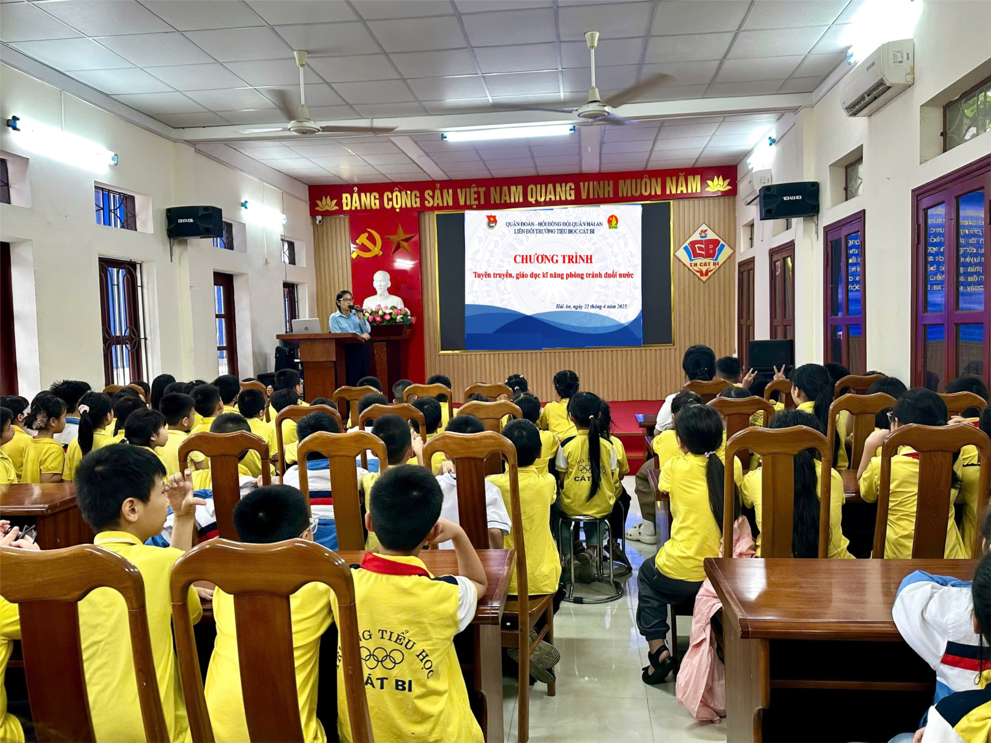 Nhằm nâng cao nhận thức và trang bị kỹ năng phòng chống tai nạn đuối nước cho học sinh, chiều ngày 22/4/2025, Trường Tiểu học Cát Bi đã tổ chức buổi tuyên truyền giáo dục kỹ năng phòng tránh đuối nước cho toàn thể học sinh trong toàn trường.