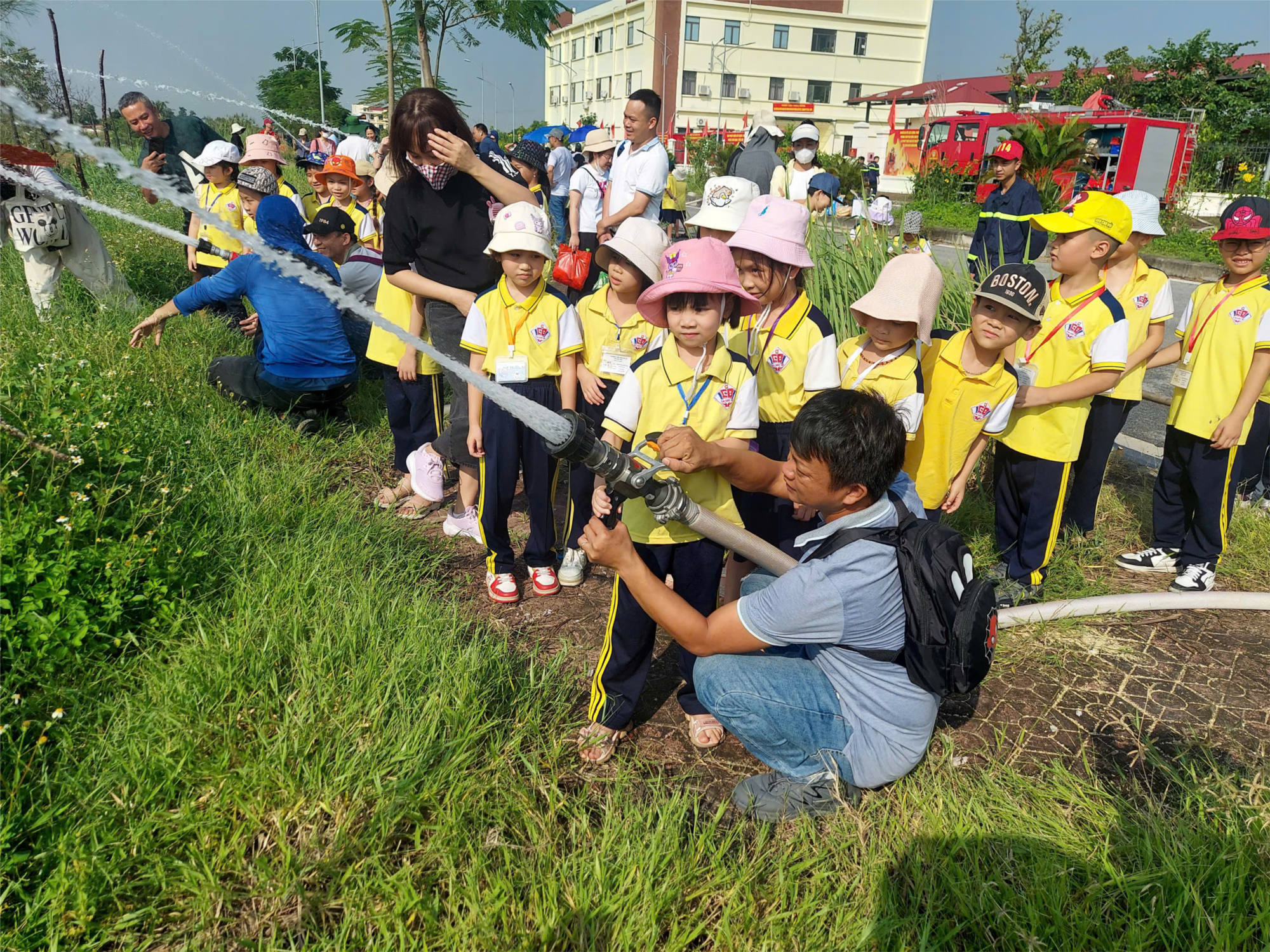 Trong không khí sôi nổi và hào hứng, các em học sinh được cán bộ, chiến sĩ PCCC giới thiệu về những nguyên nhân gây cháy nổ thường gặp, cách sử dụng bình chữa cháy, kỹ năng thoát nạn khi có cháy và thực hành thao tác chữa cháy cơ bản. Các em còn được trực tiếp quan sát và tham gia trải nghiệm phun nước dập lửa, mặc trang phục lính cứu hỏa, nghe giới thiệu về phương tiện, xe chữa cháy và thiết bị cứu nạn cứu hộ.