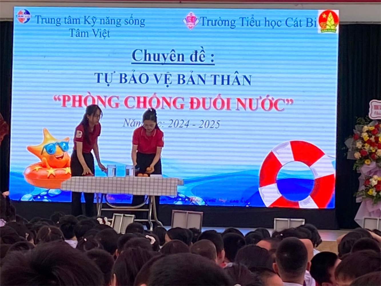 Trẻ em là tương lai của đất nước, là mầm non đang lớn lên từng ngày dưới sự chăm sóc và giáo dục của gia đình, nhà trường và xã hội. Tuy nhiên, trong những năm gần đây, các vụ tai nạn đuối nước và xâm hại trẻ em diễn ra ngày càng nhiều, để lại những hậu quả nghiêm trọng cả về thể chất lẫn tinh thần cho các em, đồng thời gây nên những nỗi đau, mất mát lớn cho gia đình và cộng đồng. Nhận thấy được tầm quan trọng đó, chiều ngày 27/5/2025, Trường Tiểu học Cát Bi phối hợp với Trung tâm Kỹ năng sống Tâm Việt tổ chức chuyên đề "Phòng chống đuối nước và phòng chống xâm hại trẻ em". Đây là một hoạt động thiết thực, có ý nghĩa giáo dục sâu sắc, giúp các em chủ động hơn trong cuộc sống và góp phần xây dựng môi trường học đường an toàn, lành mạnh.