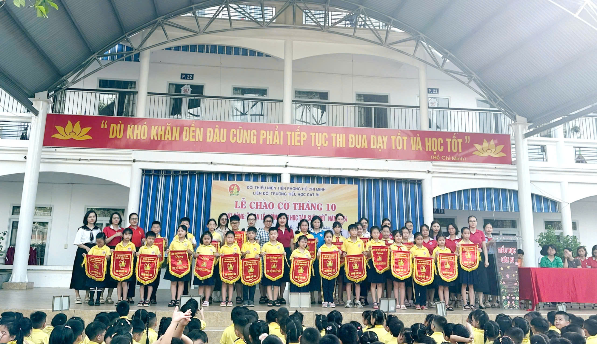 Sáng thứ Hai, ngày 30 tháng 9 năm 2024, Liên đội Trường Tiểu học Cát Bi đã tổ chức lễ chào cờ tháng 10 trong không khí trang nghiêm và đầy hứng khởi.