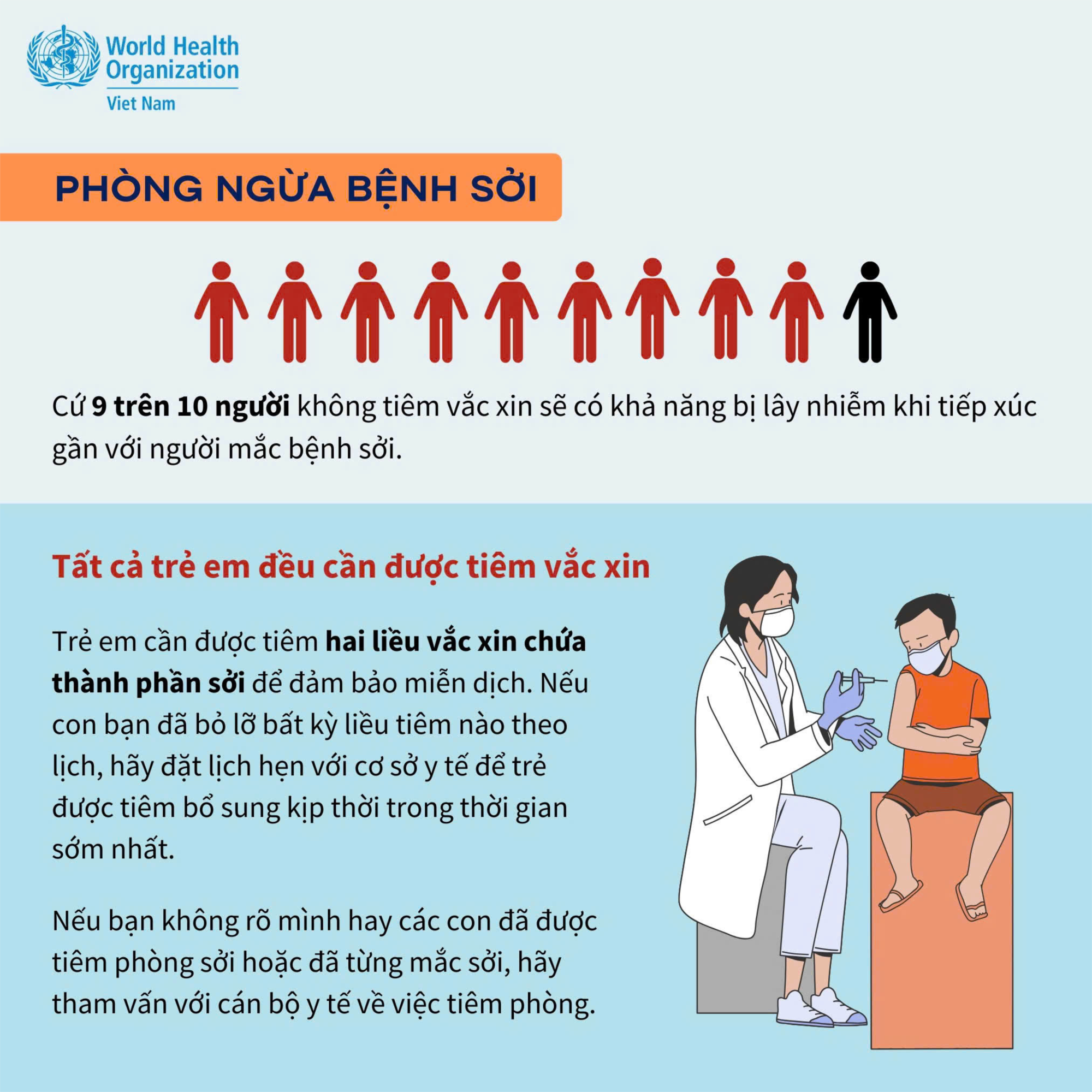 Bệnh sởi có thể phòng được. Cách tốt nhất để chủ động phòng bệnh sởi hiệu quả là tiêm vắc xin sởi đầy đủ, đúng lịch. Trẻ cần được tiêm đủ 2 mũi vắc xin sởi để phòng bệnh sởi.