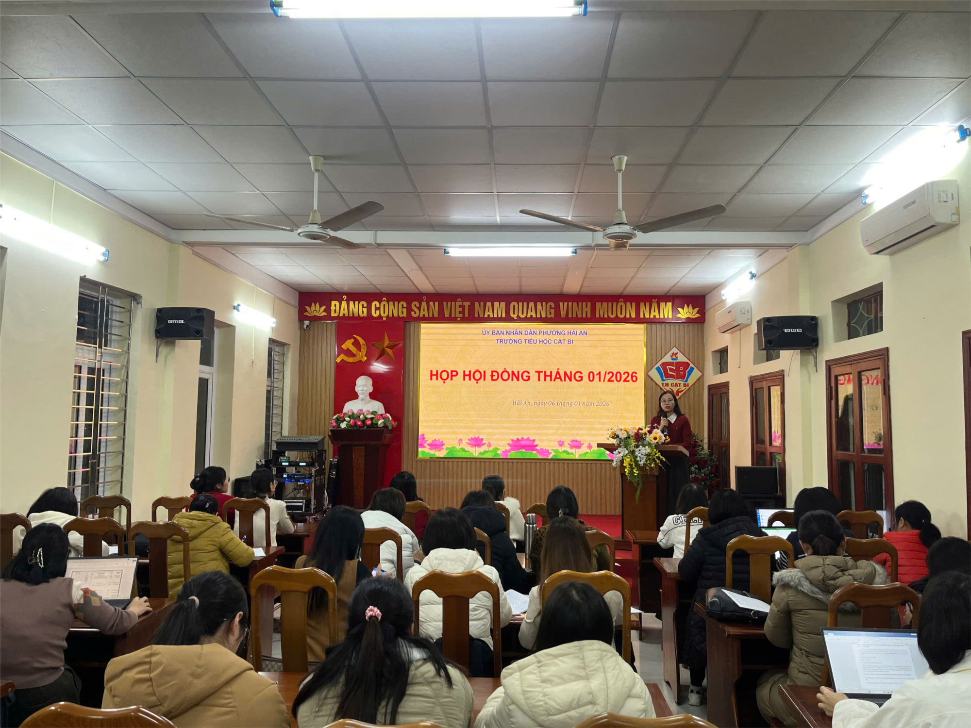 Chiều 06/01/2026, Trường Tiểu học Cát Bi tổ chức họp Hội đồng Giáo dục với sự tham gia của Ban Giám hiệu và toàn thể cán bộ, giáo viên, nhân viên nhà trường.