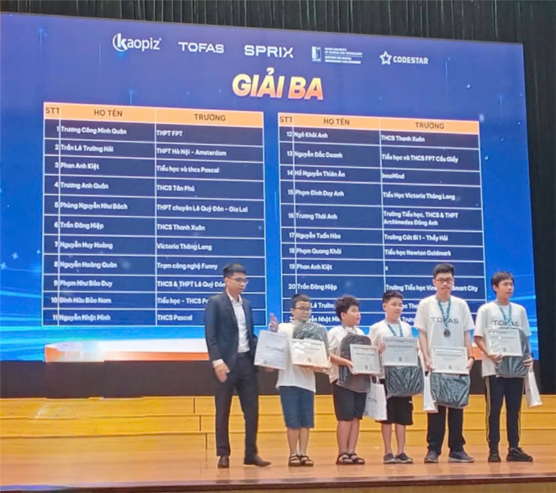 Nhà trường xin chúc mừng các em học sinh đã xuất sắc tham gia Kỳ thi Toán và Lập trình quốc tế TOFAS – một sân chơi học thuật uy tín với hơn 10 triệu thí sinh trên toàn thế giới mỗi năm . Đây là cơ hội để các em phát triển tư duy logic, khả năng giải quyết vấn đề và hội nhập quốc tế.