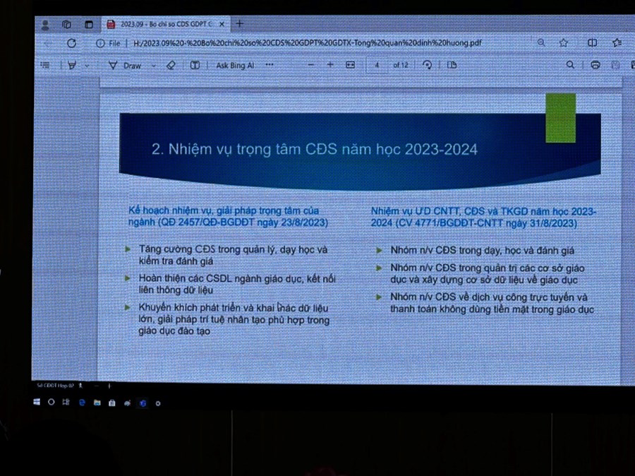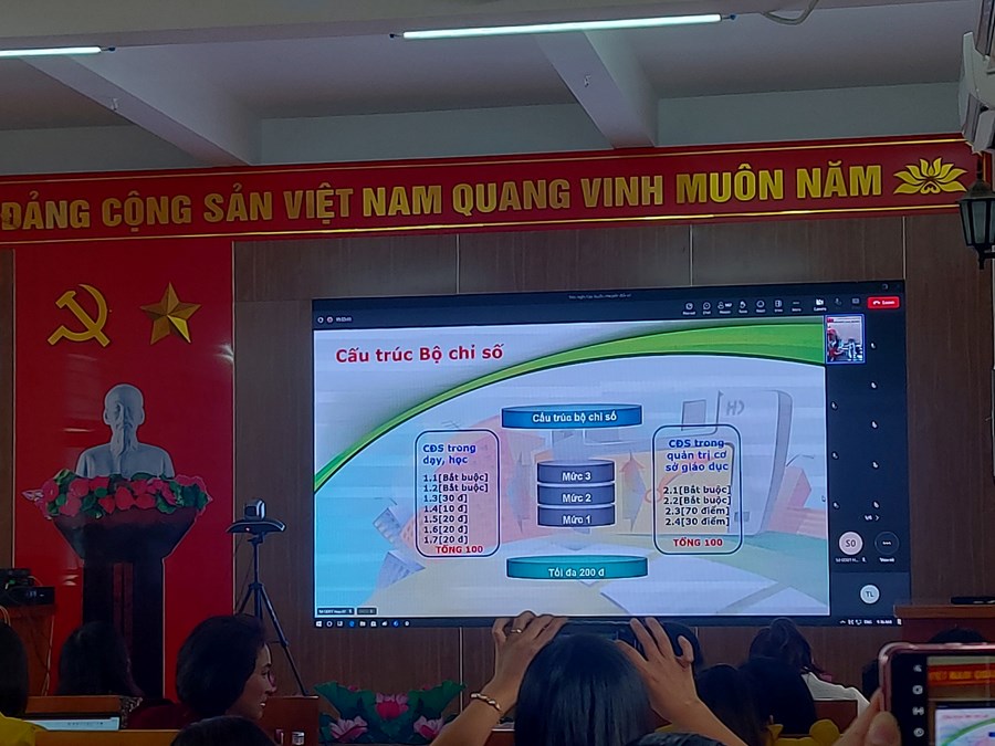Cũng trong Hội nghị, các đ/c CB-GV tham dự đã được tập huấn triển khai Hệ thống CSDL GDĐT và quản trị cơ sở dữ liệu ngành trong năm học 2023 - 2024. Các đ/c cán bộ tập huấn còn giải đáp thắc mắc của các trường về các nội dung liên quan đến chuyển đổi số.