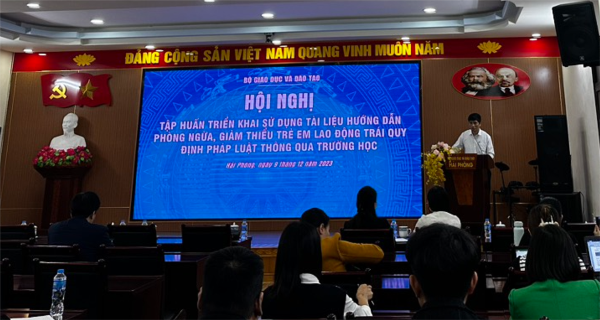 Tại buổi hội nghị, TS. Phùng Khắc Bình - Nguyên Vụ trưởng Vụ công tác học sinh, sinh viên - Bộ giáo dục và đào tạo đã chỉ ra rằng: theo báo cáo chung của tổ chức Lao động quốc tế và quỹ nhi đồng Liên hợp quốc công bố vào năm 2021, có khoảng 160 triệu trẻ em là nạn nhân của lao động trẻ em trên toàn thế giới. Tại Việt Nam, theo kết quả điều tra quốc gia về lao động trẻ em năm 2018, có trên 19,2 triệu trẻ em từ 5-17 tuổi, trong đó trên 1,7 triệu trẻ em tham gia hoạt động kinh tế, chiếm 9,1% tổng số trẻ em từ 5-17 tuổi cả nước. Tỉ lệ lao động trẻ em ở VN đang ngày càng giảm xuống, tuy nhiên vẫn còn tình trạng 1 số trẻ lao động sớm. Khi tham gia lao động sớm, trẻ em mất đi cơ hội được tiếp tục học tập tại trường để nâng cao trình độ học vấn, không được đào tạo nghề, có kiến thức kỹ năng của nghề nghiệp nên dễ bị bóc lột, tai nạn, thương tật, tệ nạn xã hội, trở thành nạn nhân của nạn mua bán người, bị xâm hại, bóc lột,......