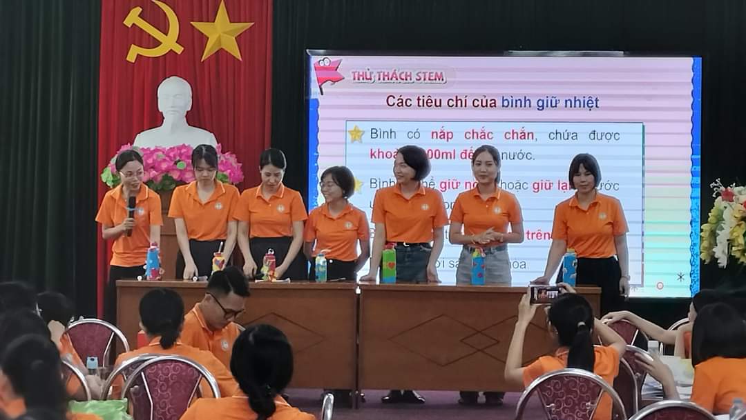 Tại hội thảo, đại biểu được dự giờ 3 tiết học STEM. Học sinh được thực hành làm bình giữ nhiệt bằng các nguyên liệu thủ công đơn giản qua đó khuyến khích các em phát huy khả năng sáng tạo, được tiếp cận sớm với giáo dục khoa học, kĩ thuật để phát triển toàn diện về trí tuệ, thể chất. Sau khi dự tiết dạy, các đ/c giáo viên được trao đổi thảo luận về việc xây dựng kế hoạch bài dạy, nội dung, hình thức, phương pháp tổ chức các hoạt động giáo dục STEM.