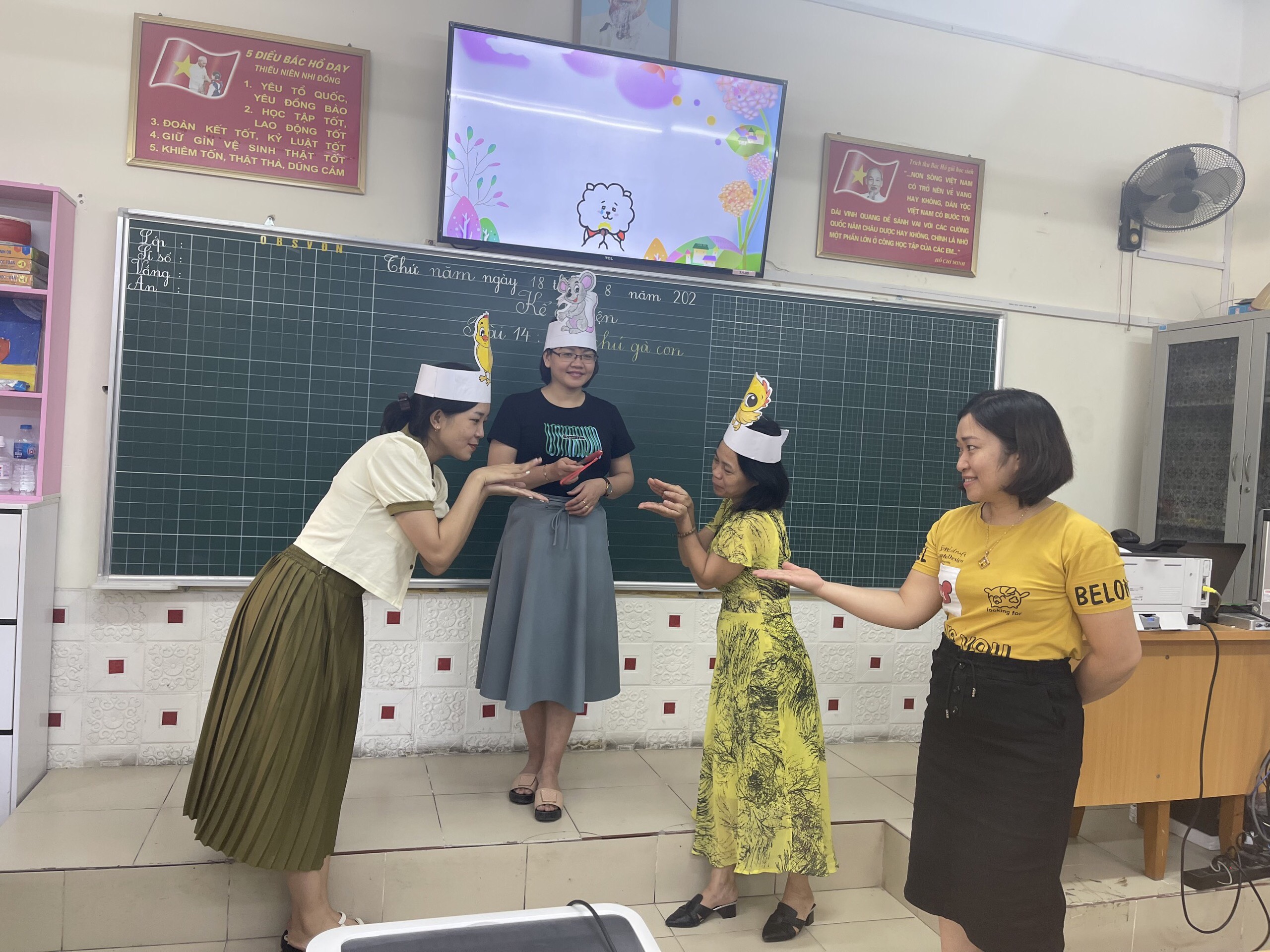 Dưới đây là một số hình ảnh của các buổi sinh hoạt chuyên môn với 2 tiết dạy minh họa: Kể chuyện “Hai chú gà con” và Tiếng Việt “Ôn tập”