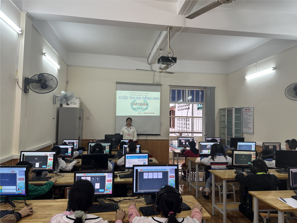 Sáng thứ năm, ngày 11/1/2024, nhà trường đã tổ chức cuộc thi Olympic Tiếng Anh trên Internet (IOE) năm học 2023-2024 cấp quận cho học sinh khối 3, khối 4, khối 5. Đối với Khối 5 từ 7h30-8h; Khối 3 từ 8h30-9h; Khối 4 từ 9h30-10h.