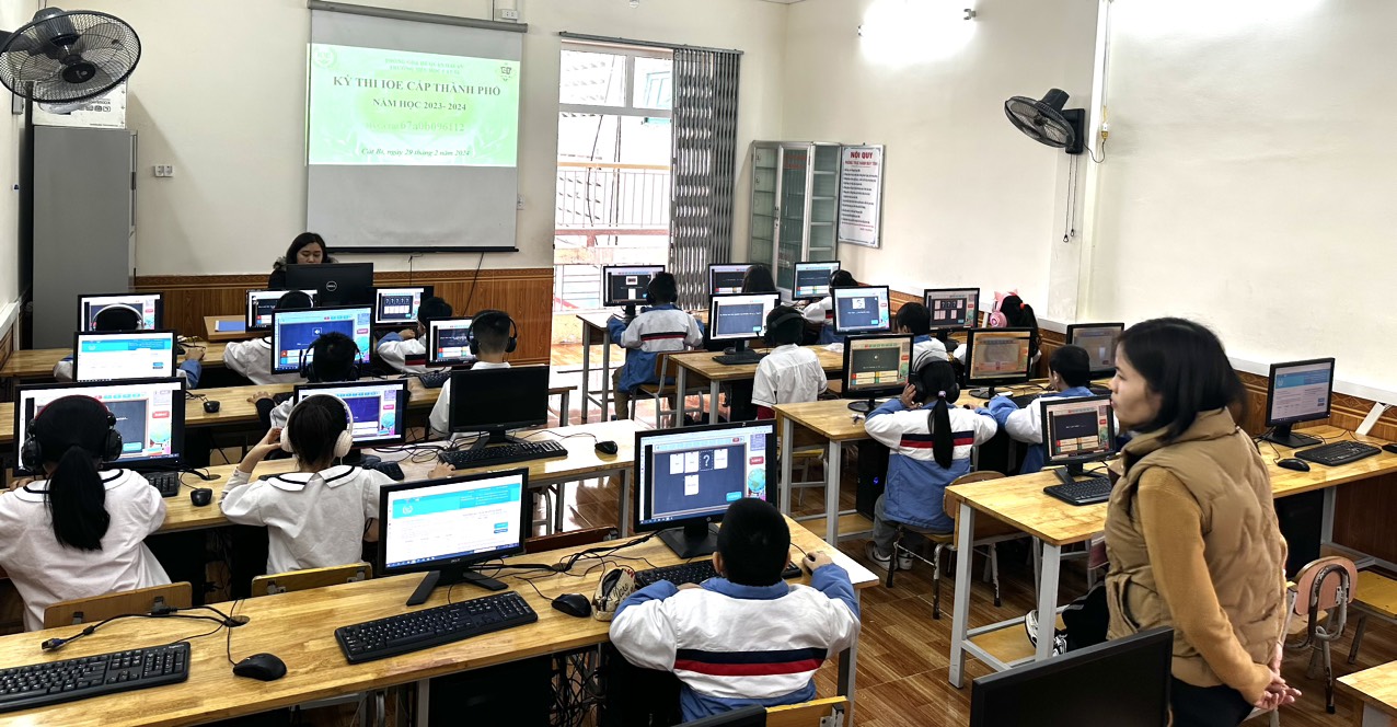 Kỳ thi đã diễn ra nghiêm túc với sự chuẩn bị chu đáo từ khâu tổ chức đến công tác CSVC, phòng máy được trang bị đầy đủ, đường truyền Internet tốc độ cao, ổn định và sự hân hoan của tất cả các em học sinh.