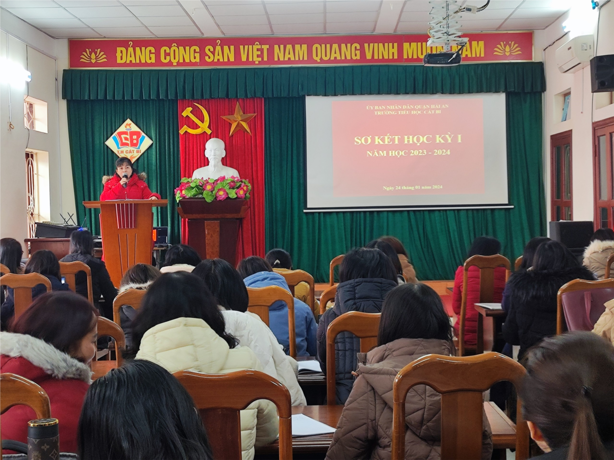 Vào 14 giờ chiều thứ tư, ngày 24/ 01/ 2024, trường Tiểu học Cát Bi đã tổ chức Hội nghị Sơ kết học kì I năm học 2023 - 2024. Tham dự Hội nghị có đ/c Nguyễn Thị Phương - Hiệu trưởng nhà trường, đ/c Nguyễn Thị Hà Giang và đ/c Trần Thị Minh Ngọc - Phó Hiệu trưởng cùng 100% cán bộ, giáo viên, nhân viên nhà trường.