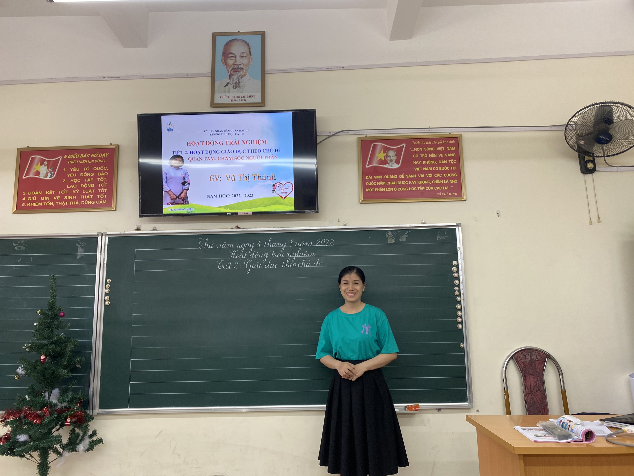 Trong buổi tập huấn, đồng chí Vũ Thị Thành còn lên tiết dạy minh hoạ môn Hoạt động trải nghiệm tiết giáo dục theo chủ đề (Tiết 2 trong tuần) bài “Quan tâm chăm sóc người thân”. Ngoài các phương pháp dạy học truyền thống, đồng chí còn sử dụng 2 phương thức chủ yếu trong hoạt động dạy của là phương thức khám phá, phương thức thể nghiệm tương tác. Với các phương thức dạy học như , đồng chí đã tổ chức các hoạt động học tập để học sinh trải nghiệm thực tế và bằng kinh nghiệm thực tế để học sinh tự hình thành cá phẩm chất năng lực.