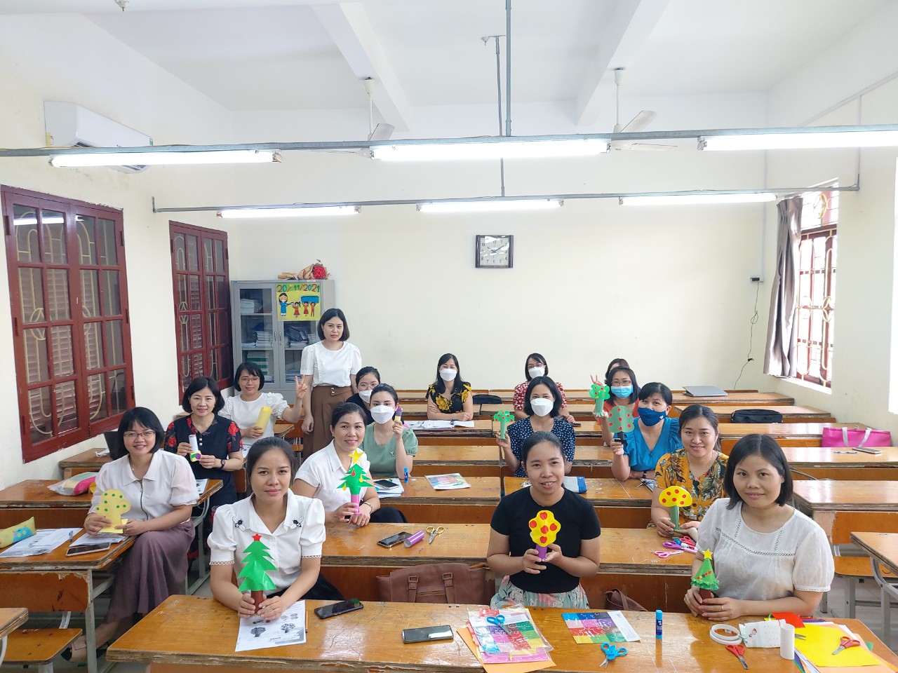Trong buổi tập huấn, đồng chí Lê Thuý Nga còn lên tiết dạy minh hoạ môn Mĩ thuật: "Bài 1: Cây trong vườn " (tiết 1) . Tiết dạy giúp học sinh nắm được cách cắt, ghép các hình khối khác nhau để tạo sản phẩm mĩ thuật; tạo được mô hình cây 3D từ giấy, bìa và các vật liệu khác nhau. Từ đó, học sinh chia sẻ được cảm nhận về chất bề mặt vật liệu và sự tương phản của khối trong sản phẩm mĩ thuật; hiểu được vai trò của cây xanh trong cuộc sống và có ý thức chăm sóc và bảo vệ cây.