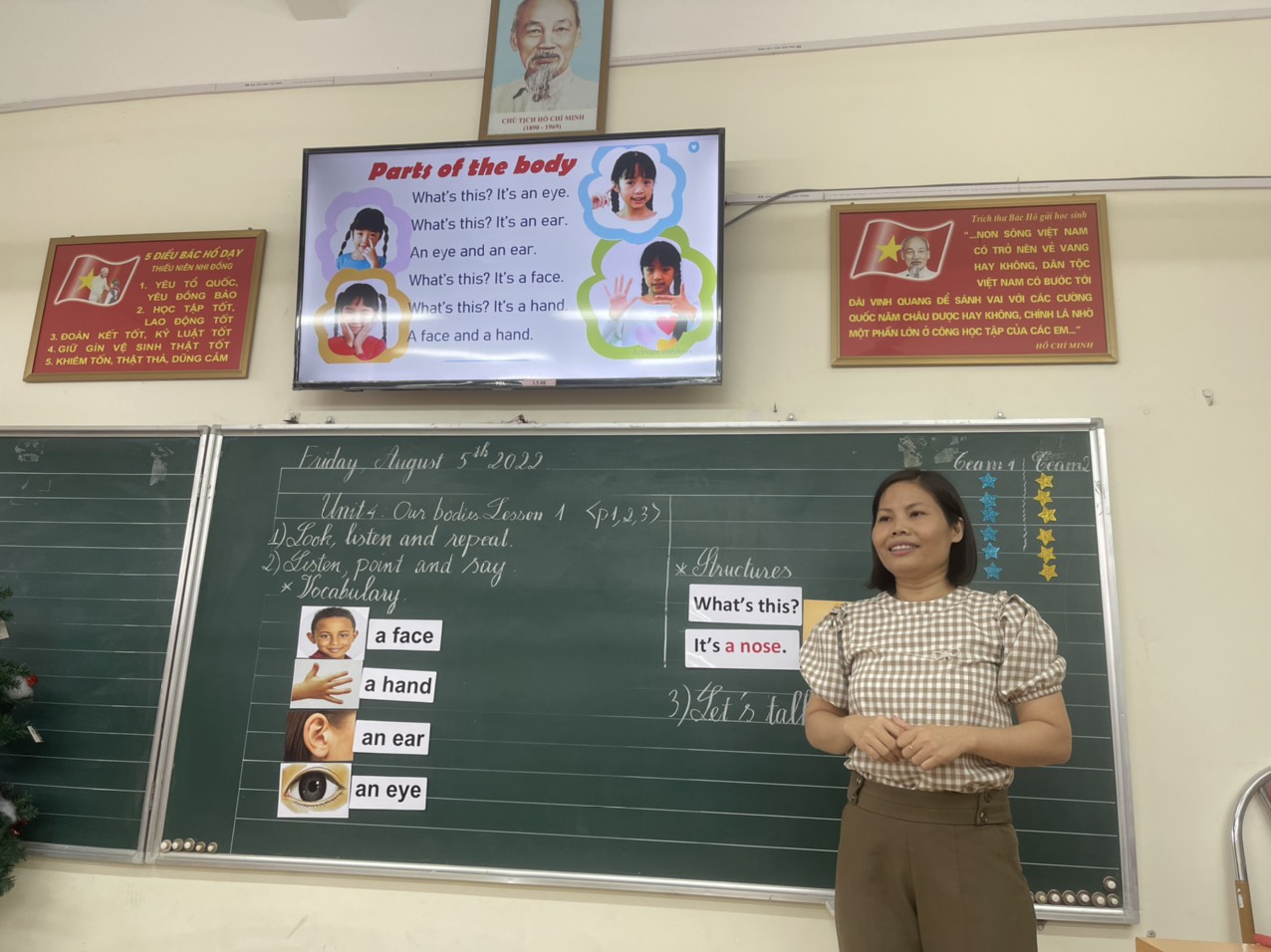Sau khi lắng nghe đồng chí Nguyễn Thị Ngọc Anh trình bày các nội dung của môn Tiếng Anh 3 - bộ sách Cánh Diều, đồng chí Đào Thị Thà lên tiết dạy minh họa Unit 4: Our bodies - Lesson 1. Tiết dạy giúp chúng tôi biết thêm các phương pháp tổ chức hoạt động học tập sáng tạo, vui nhộn, tích cực để giúp học sinh được rèn luyện các kĩ năng nghe, nói đọc viết một cách rất linh hoạt, thành thạo.
