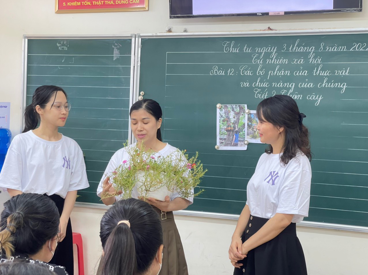 Trong buổi tập huấn, đồng chí Phạm Thị Thúy còn lên tiết dạy minh hoạ môn Tự nhiên và xã hội bài: "Các bộ phận của thực vật và chức năng của chúng" (tiết 2). Tiết dạy mô tả rõ những phương pháp mới nhất như thí nghiệm, trải nghiệm và các trò chơi “phóng viên”, “rung chuông vàng”, "ô chữ kì diệu" giúp cho học sinh chiếm lĩnh tri thức một cách tự nhiên và từ đó hình thành phát triển cho học sinh các năng lực - phẩm chất. Với sự chuẩn bị đồ dùng thí nghiệm chu đáo, sáng tạo đã làm cho tiết học thêm hấp dẫn và có nhiều trải nghiệm mới mẻ.