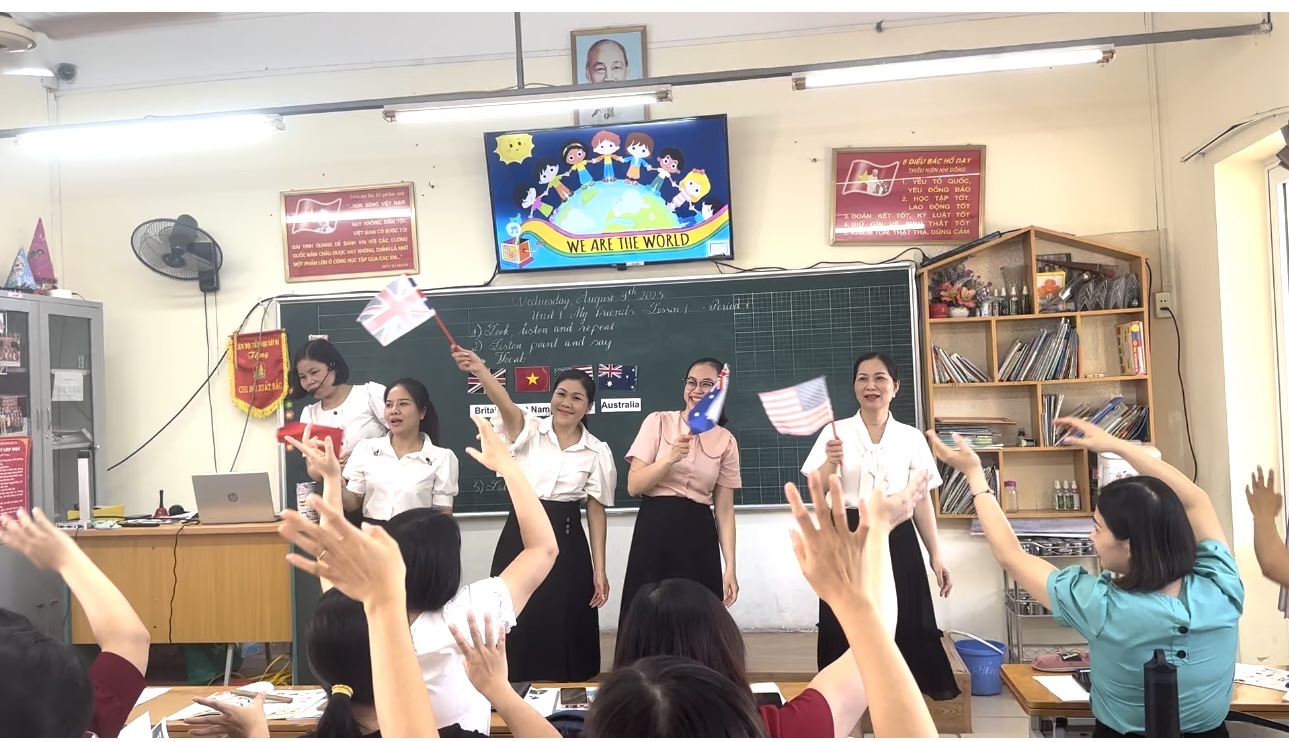 Cuối buổi tập huấn, đ/c Đào Thị Thà lên tiết với bài dạy: “Unit 1. My friends Lesson 1 period 1” Với sự hướng dẫn nhiệt tình của cô giáo qua từng hoạt động các đồng chí giáo viên đã nắm rõ được từ mới, mẫu câu trong bài học và tham gia luyện nói theo nhóm, chơi nhiều trò chơi rất sôi nổi hào hứng.