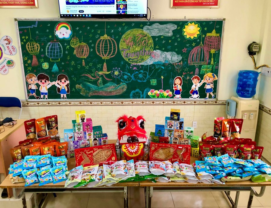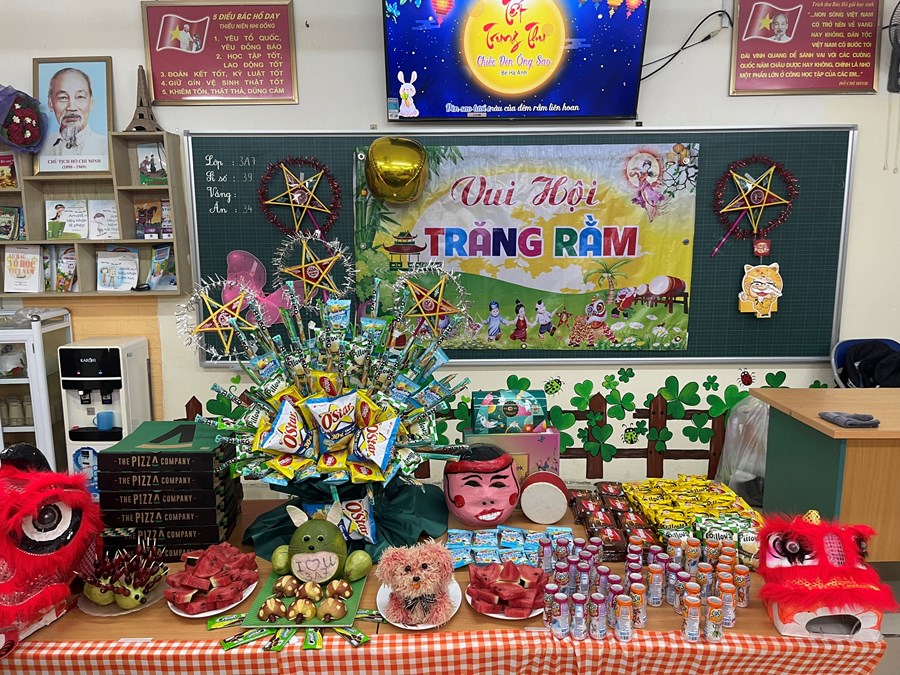 Các em học sinh rất háo hức được mặc những bộ trang phục đẹp, chuẩn bị những món đồ chơi yêu thích để cùng các bạn phá cỗ. Bên cạnh đó, các lớp còn tổ chức cho các em tham gia hoạt động vui chơi, giao lưu, trải nghiệm trong chương trình: rước đèn trung thu, làm và trang trí mặt nạ, lồng đèn, trang trí mâm cỗ và thưởng thức màn múa lân đặc sắc.