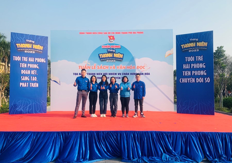 Dưới sự chỉ đạo của Thành đoàn Hải Phòng, các đồng chí trong chi đoàn tham gia chương trình khởi động tháng thanh niên 2023, tuần lễ sách và văn hoá đọc, toạ đàm “Thanh niên với nhiệm vụ chấn hưng văn hoá trong kỉ nguyên số” vào ngày 4/3/2023 tại Vườn hoa Tố Hữu - Dải vườn hoa trung tâm thành phố (phường Minh Khai, quận Hồng Bàng)