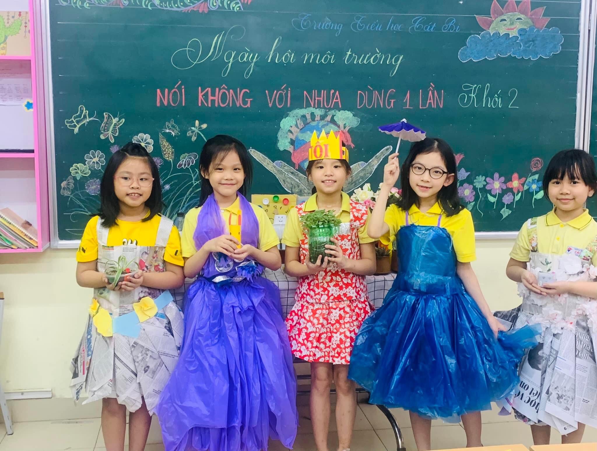 Trong không khí cả nước hưởng ứng ngày hội môi trường “Nói không với rác thải nhựa” Trường Tiểu học Cát Bi cũng góp một phần nhỏ vào công cuộc xây dựng một trái đất xanh – sạch – đẹp với những hành động ý nghĩa của các bạn nhỏ. Các em được GVCN giáo dục những kiến thức về bảo vệ môi trường, xây dựng thói quen hạn chế sử dụng các sản phẩm từ nhựa dùng một lần, tái chế các đồ vật có ích từ những các loại chai, nhựa để phần nào giảm đi những loại rác thải ra môi trường. Các em cũng đã có những ý tưởng rất hay với những loại đồ dùng các em dùng hàng ngày như: chậu cây làm từ vỏ chai, lồng đèn từ lon coca, hay những bộ quần áo được tạo nên từ nhiều chất liệu bị bỏ đi......