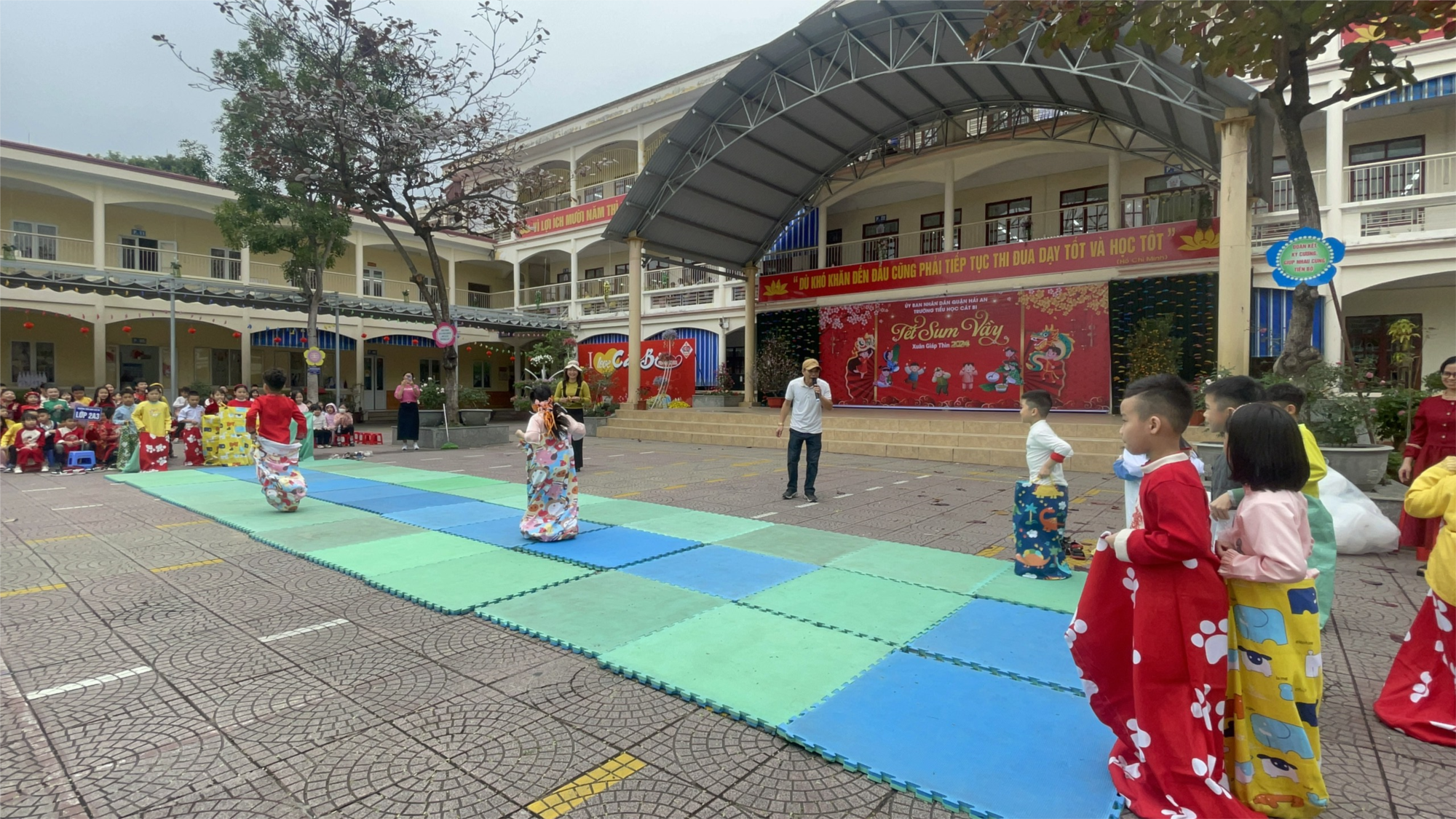 Thời đại của công nghệ, các trò chơi điện tử trên điện thoại thông minh, laptop lên ngôi, các trò chơi dân gian đang dần rơi vào lãng quên. Chính vì lí do đó và nhằm hưởng ứng các hoạt động mừng Đảng, mừng xuân, chào mừng ngày thành lập đoàn TNCS Hồ Chí Minh, Liên đội Tiểu học Cát Bi tổ chức cho các em học sinh tham gia Ngày hội thiếu nhi vui khoẻ. Các em thiếu niên nhi đồng được nghe giới thiệu, tham gia các trò chơi dân gian như: nhảy bao bố, chuyền bóng, kéo co, nhảy sạp...