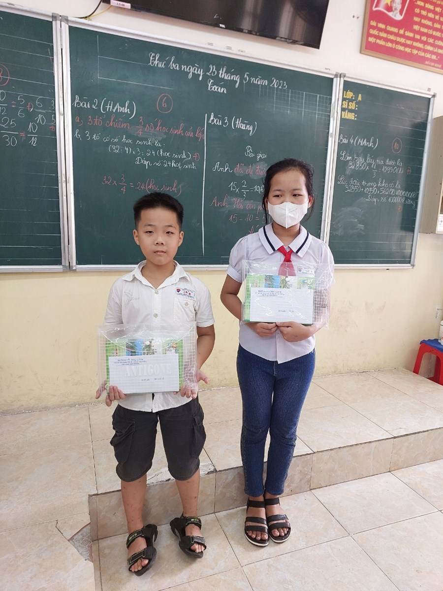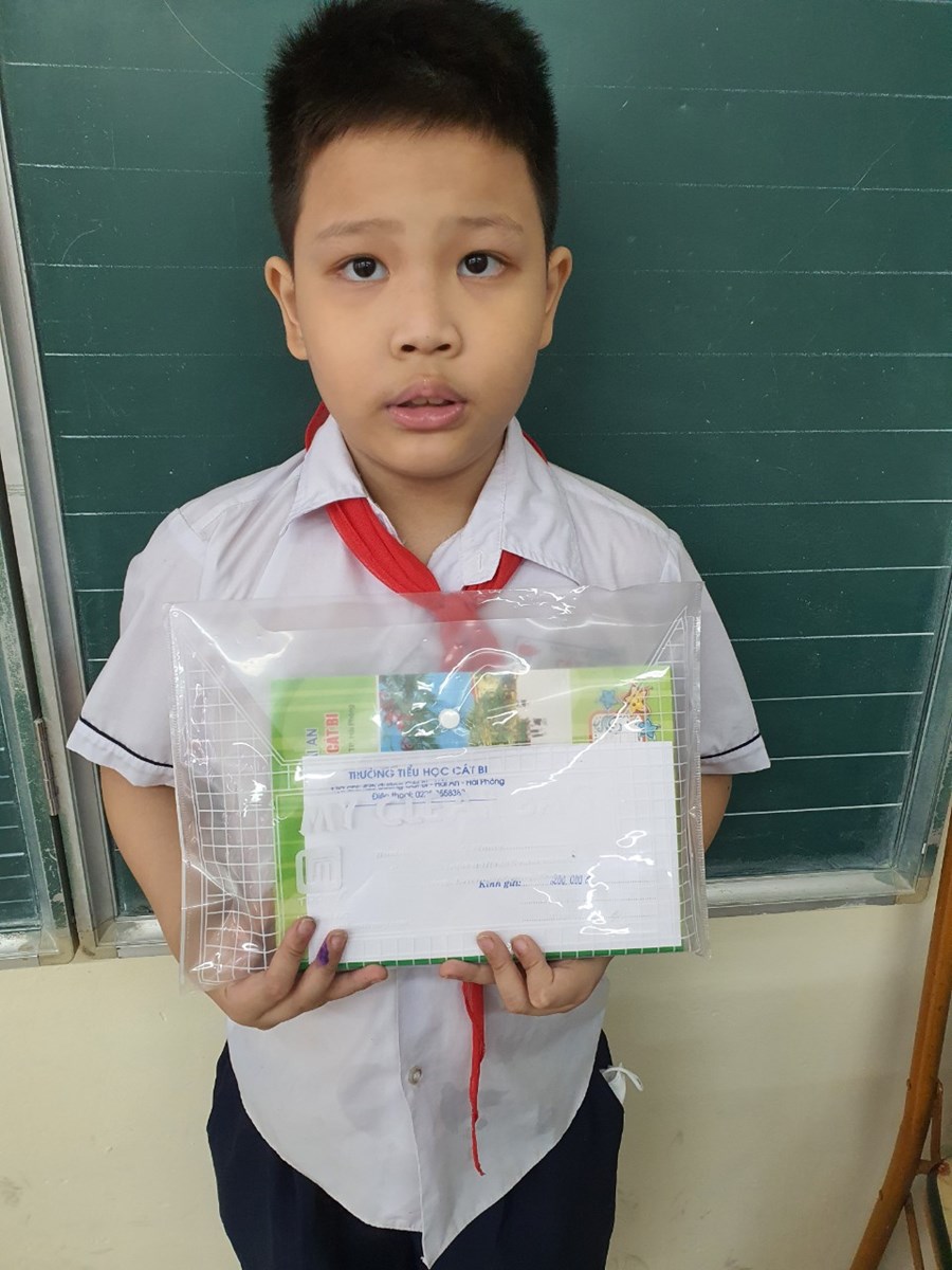 Đây là dịp để nhà trường và thầy cô ghi nhận, chúc mừng những thành tích mà các em đạt được. Và đây cũng là dịp để trường Tiểu học Cát Bi thể hiện sự quan tâm tới các em học sinh có hoàn cảnh khó khăn. Nhà trường đã tặng vở và tiền cho 38 em học sinh với tổng số tiền 9.500.000 đồng (250.000 đồng/em)