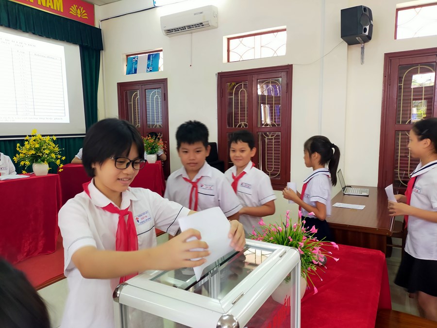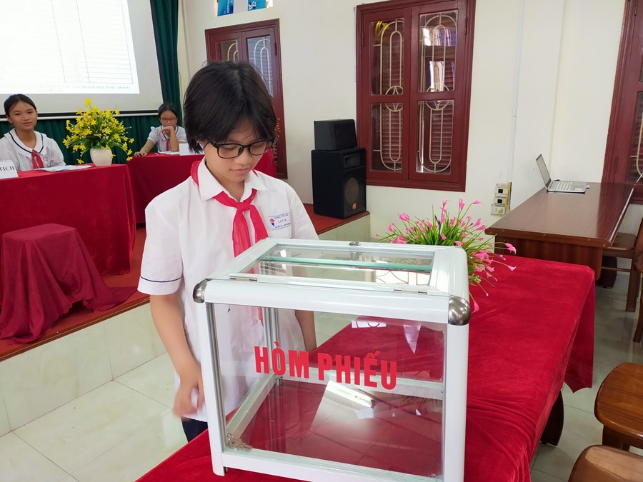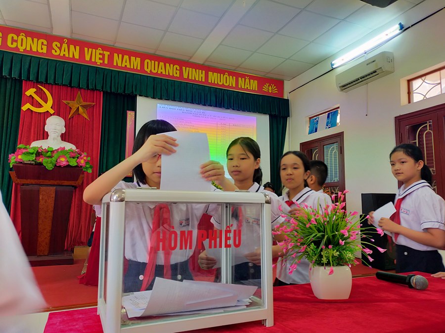Tại Đại hội, em Nguyễn Minh Phương – Chi Đội lớp 4A2 đại diện cho Đoàn chủ tịch đã báo cáo tổng kết công tác Đội và phong trào thiếu nhi năm học 2022- 2023 và bản dự thảo phương hướng nhiệm vụ công tác Đội và phong trào thiếu nhi năm học 2023 – 2024. Đại hội đã được nghe các bản tham luận chia sẻ về “ Tích cực tham gia hoạt động Đội và công tác môi trường”, tham luận “Rèn luyện tính tự giác nâng cao chất lượng học tập”.