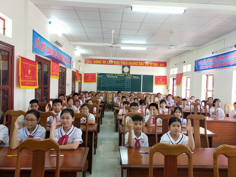 Trong đại hội hôm nay 54 bạn đội viên đại diện cho 1.902 thiếu niên, nhi đồng của Liên đội đã về dự đông đủ, về đây để nhìn lại những bước truởng thành đã qua, và cùng bàn bạc và thảo luận về phương hướng hoạt động cho năm học 2023 - 2024 và bầu ra ban chỉ huy Liên đội nhiệt tình, có năng lực để đưa Liên đội ta trở thành Liên đội có phong trào đội luôn phát triển mạnh mẽ và thực hiện tốt chỉ tiêu thi đua với chủ đề: