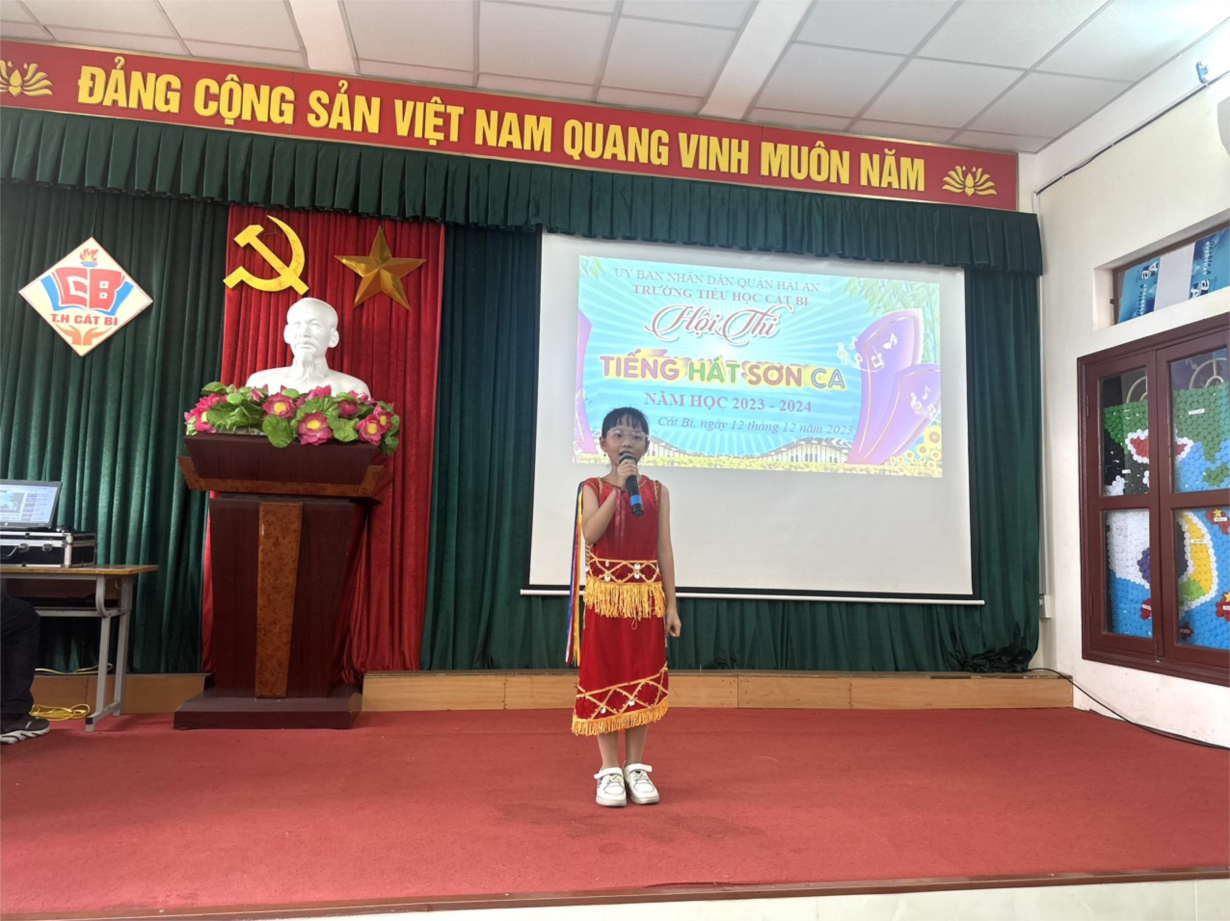 Nhằm động viên, khích lệ và xây dựng phong trào văn nghệ, các môn năng khiếu của học sinh, đồng thời chọn ra hạt nhân mũi nhọn thực sự có niềm đam mê ca hát và tố chất, năng khiếu tốt để bồi dưỡng tham gia các cuộc thi cấp Quận và Thành phố; chiều thứ ba - ngày 12/12/2023, trường Tiểu học Cát Bi tổ chức Hội thi Tiếng hát sơn ca cấp trường năm học 2023 - 2024 trong không khí sôi nổi, hân hoan của các em học sinh.