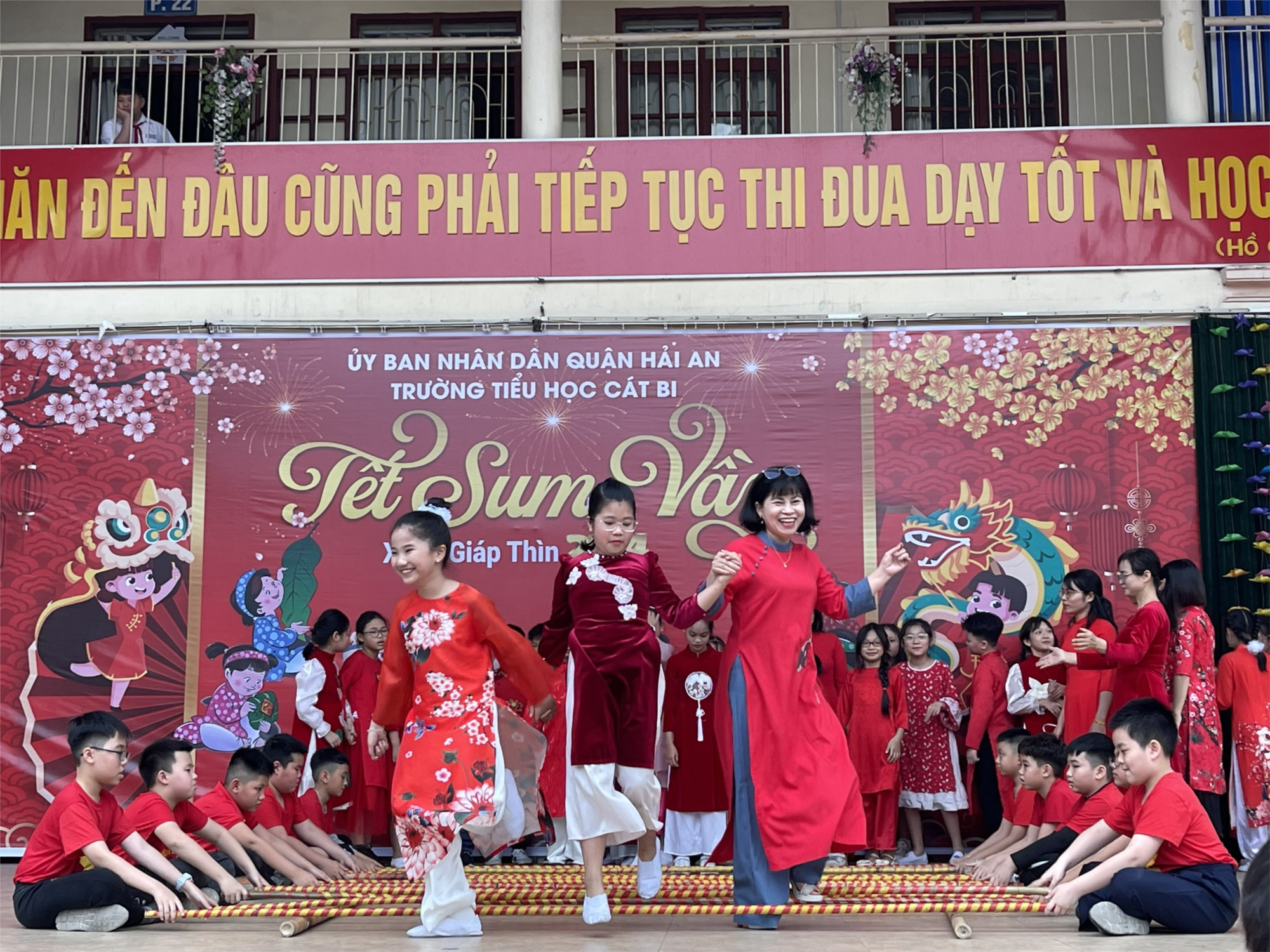 Tết Nguyên đán là lễ hội lớn nhất trong các lễ hội truyền thống Việt Nam từ hàng ngàn đời nay. Thật tuyệt biết bao khi những ngày giáp Tết, chúng ta lại được hòa mình vào không khí ấm áp của mùa xuân, được cảm nhận hương vị ngày Tết, được bên cạnh người thân. Với ý nghĩa tốt đẹp đó, chiều thứ Ba - ngày 06/02/2024 trường Tiểu học Cát Bi đã tưng bừng tổ chức các hoạt động ngoại khóa chào xuân 2024 kết hợp tuyên truyền phân loại rác thải sinh hoạt, tuyên truyền phòng chống cháy nổ và an toàn giao thông cho các em học sinh toàn trường.