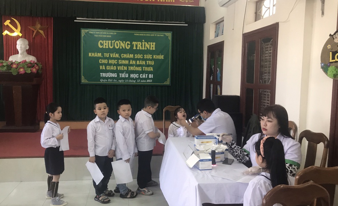 Với mong muốn các em học sinh có một sức khỏe tốt để học tập, vui chơi, ngày 14/12/2023, trường Tiểu học Cát Bi đã phối hợp với Công ty TNHH chế biến và cung cấp thực phẩm New Green, Phòng khám đa khoa Quốc tế Tâm Phúc tổ chức khám, tư vấn, chăm sóc sức khỏe cho hơn 1000 học sinh lớp 1; 2; 3 và giáo viên trông trưa. Các em được đo cân nặng, chiều cao, huyết áp; kiểm tra thị lực,...