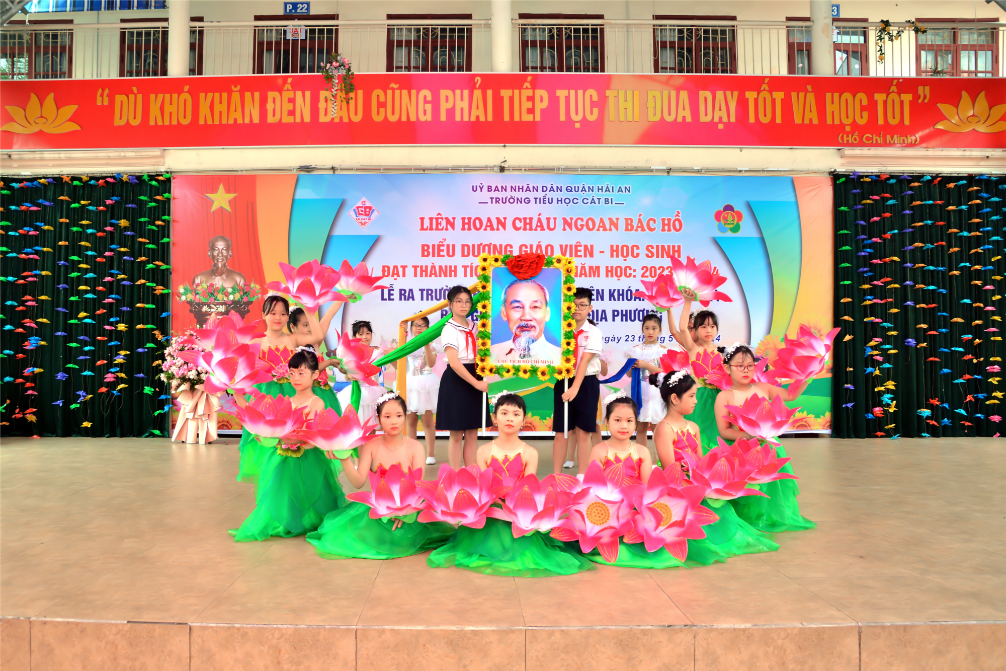 Sáng hôm nay, ngày 23/5/2024 trường Tiểu học Cát Bi đã tổ chức “CHƯƠNG TRÌNH LIÊN HOAN CHÁU NGOAN BÁC HỒ - TỔNG KẾT NĂM HỌC; BIỂU DƯƠNG GIÁO VIÊN - HỌC SINH ĐẠT THÀNH TÍCH XUẤT SẮC; LỄ RA TRƯỜNG HỌC SINH LỚP 5 - NIÊN KHOÁ 2019 – 2024; BÀN GIAO HỌC SINH VỀ ĐỊA PHƯƠNG.” Về dự chương trình có cô giáo Nguyễn Thị Mai Thoa - Chuyên viên Phòng Giáo dục và Đào tạo quận Hải An, chị Vũ Phương Thảo – Cán bộ Quận đoàn Hải An, bác Nguyễn Văn Quảng – Bí thư Đảng ủy phường Cát Bi, bác Nguyễn Văn Quang – Chủ tịch UBND phường Cát Bi, bác Nguyễn Quốc Hưng – Phó Chủ tịch UBND phường Cát Bi, ông Kwak Jae Won – Giám đốc Ngân hàng Shinhan và bà Nguyễn Thị Hồng Hiệp - Phó giám đốc Ngân hàng Shinhan. Tới dự đại hội hôm nay còn có sự hiện diện của các ban nghành đoàn thể, công an phường, tổ trưởng dân phố, đơn vị kết nghĩa, các cô bác trong Ban đại diện cha mẹ HS của 44 lớp cùng 1896 học sinh trong trường.