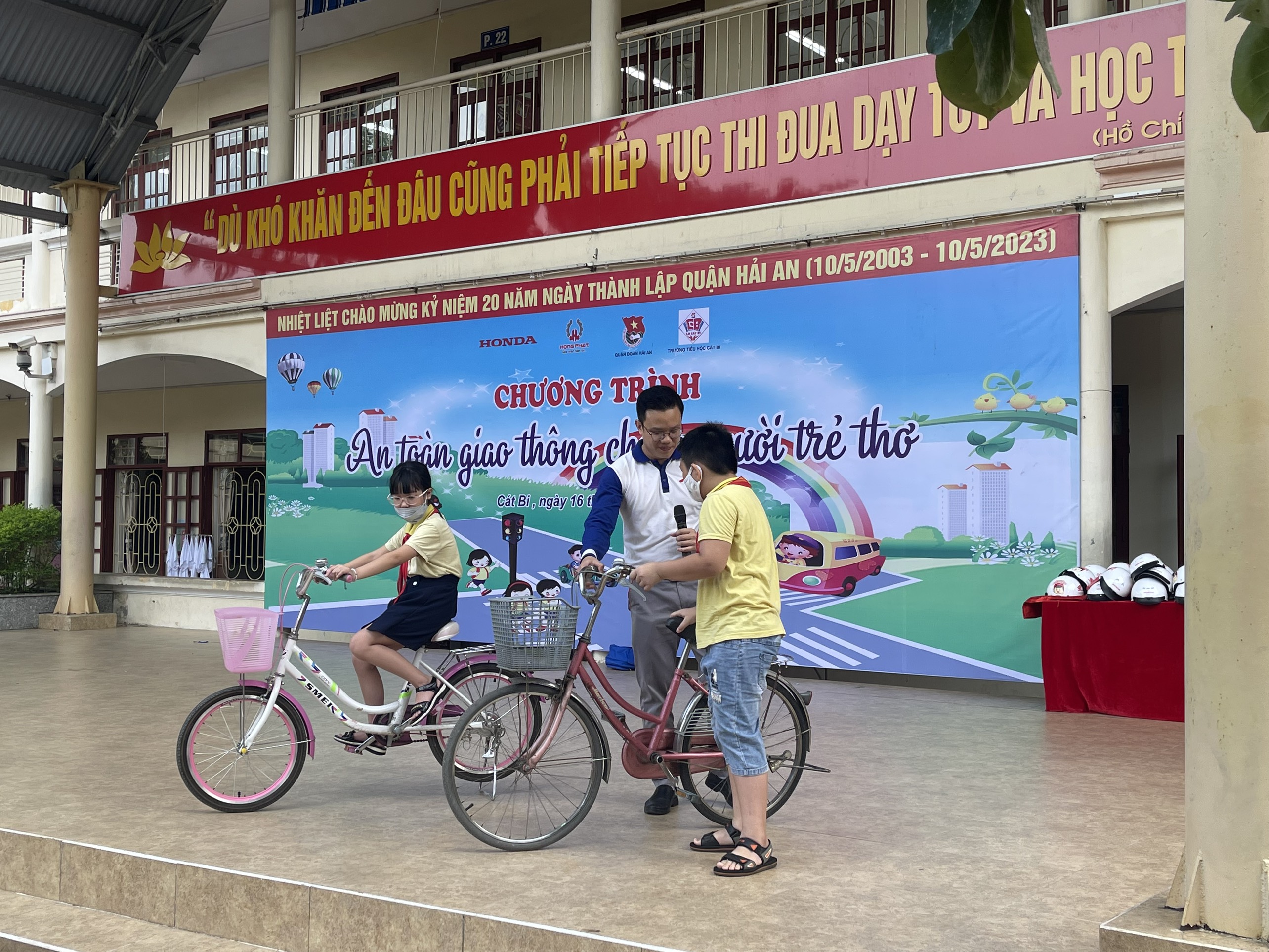 Thực hiện CV số 42 của BCH Đoàn quận Hải An về việc tổ chức truyền thông An toàn giao thông cho thiếu nhi học sinh, và nhằm phát huy vai trò, trách nhiệm của các đoàn thể trong nhà trường về công tác giáo dục an toàn giao thông; nâng cao chất lượng và hiệu quả công tác giáo dục an toàn giao thông trong trường học, Quận đoàn Hải An đã phối hợp với Công ty Cổ phần ô tô, xe máy Hồng Phát tổ chức buổi tuyên truyền cho các em học sinh trường Tiểu học Cát Bi thông qua chương trình “An toàn giao thông cho nụ cười trẻ thơ”.