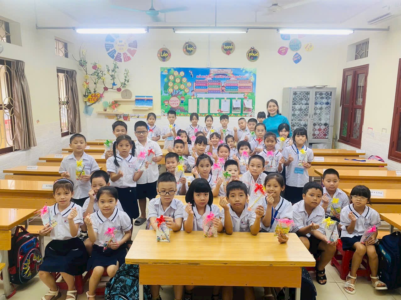Sự háo hức đó không chỉ ở các bạn học sinh mà còn là tâm trạng của mỗi cô giáo trong trường. Trước ngày tập trung, các cô đã có sự chuẩn bị rất chu đáo từ phòng học, bàn ghế, bảng lớp và những món quà nhỏ nhắn, đáng yêu. Từng lời chào, lời chúc, lời nhắn nhủ của các cô đều được lưu lại trên những lá thư đẹp gửi tới các con.