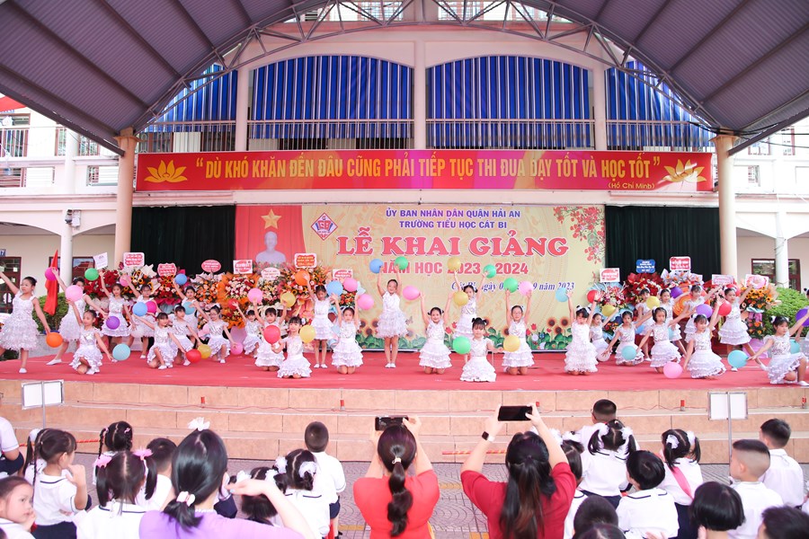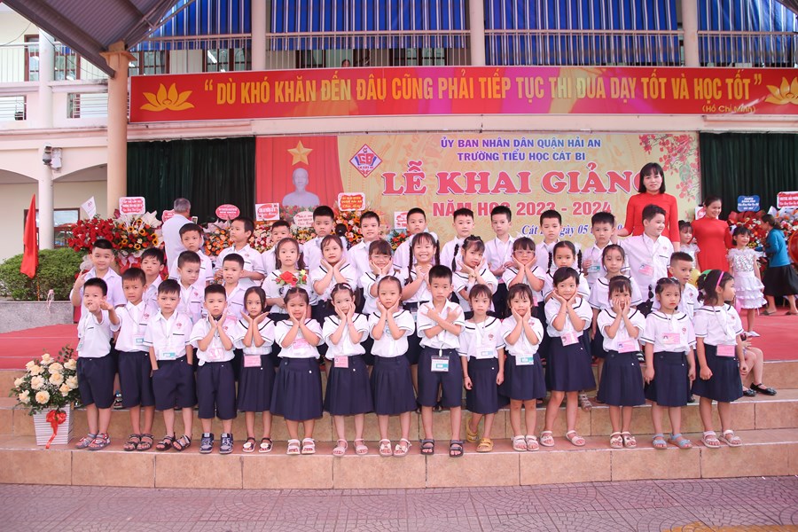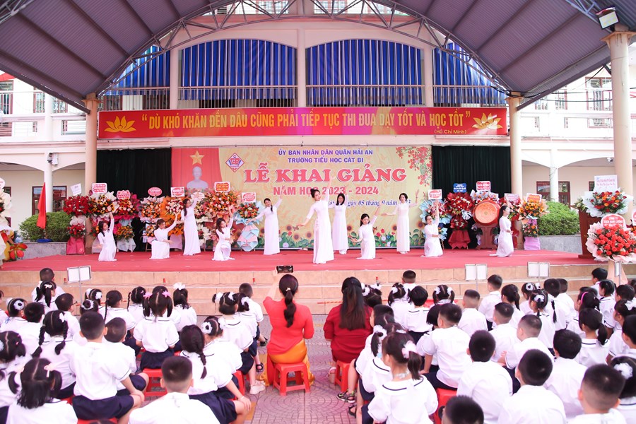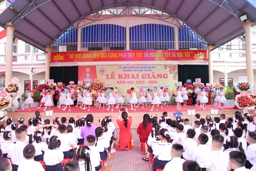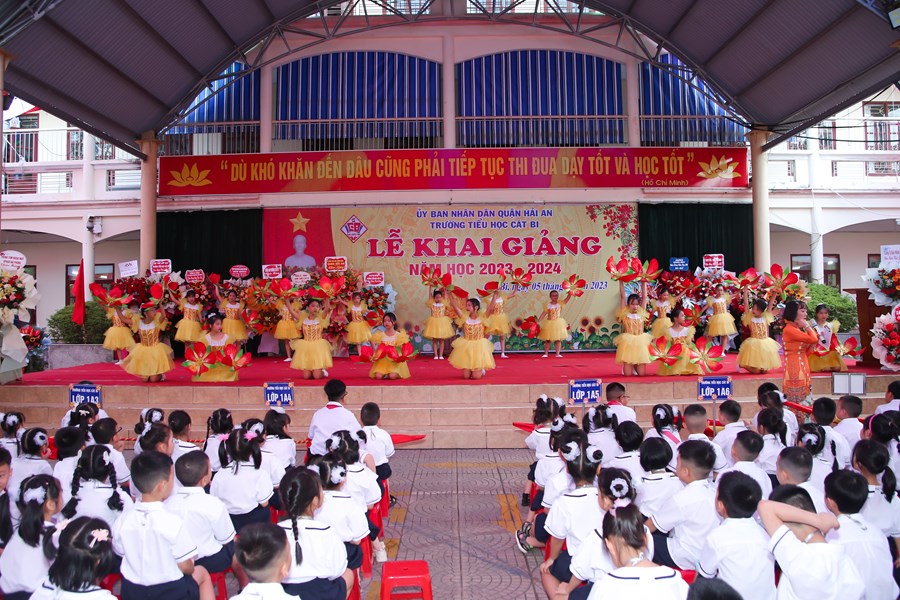 Sáng nay, ngày 5/9/2023, đúng 8 giờ, trường Tiểu học Cát Bi tưng bừng tổ chức Lễ Khai giảng năm học 2023-2024.