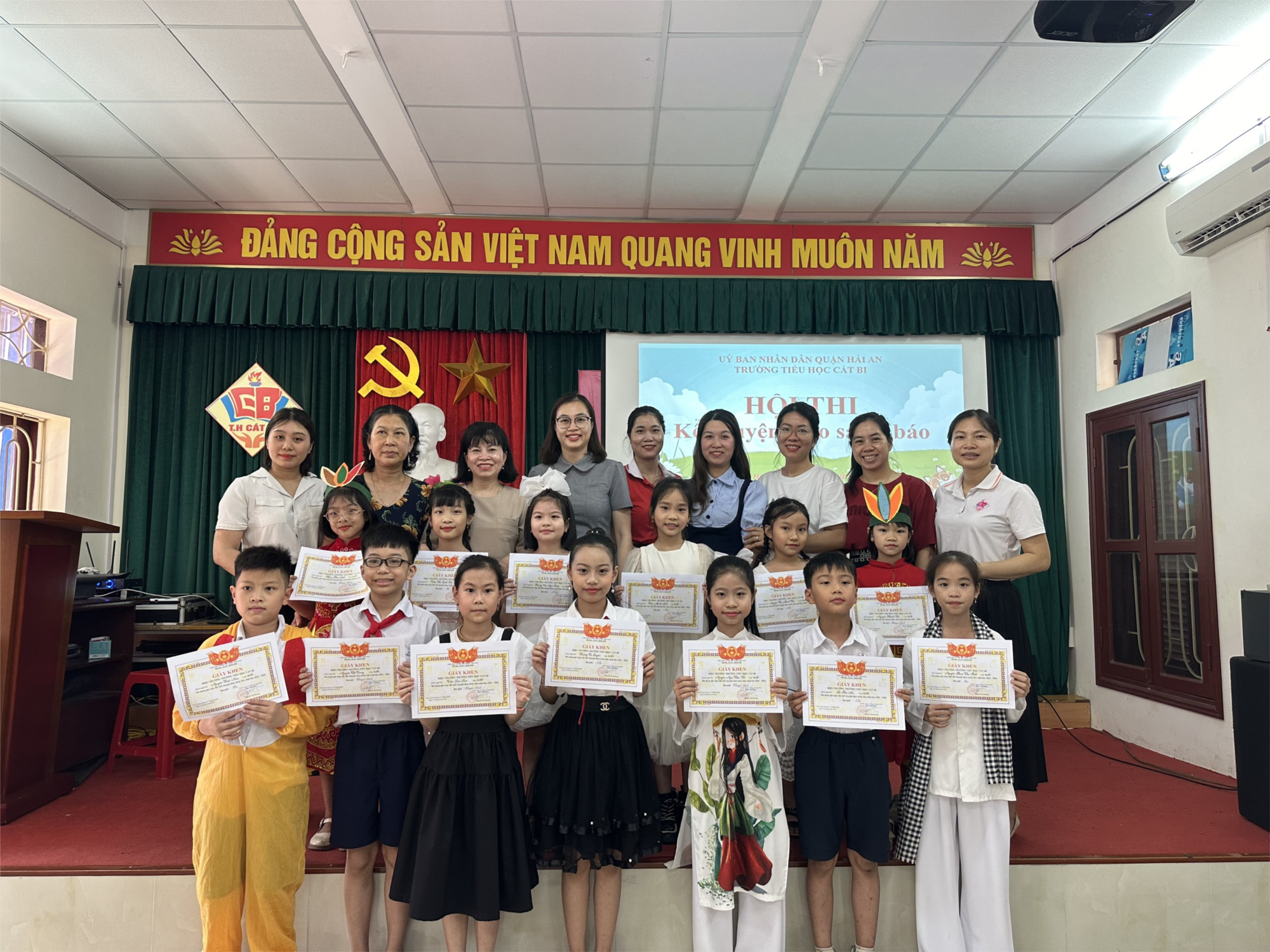 Chiều ngày 23/04/2024, trường Tiểu học Cát Bi tổ chức Hội thi Kể chuyện theo sách, báo nhằm xây dựng và phát triển phong trào đọc sách, khuyến khích các em học sinh khám phá niềm đam mê đọc sách, hướng tới xây dựng một xã hội học tập. Tới dự hội thi có cô giáo Nguyễn Thị Phương – Bí thư Chi bộ, Hiệu trưởng nhà trường, cô giáo Nguyễn Thị Hà Giang và cô giáo Trần Thị Minh Ngọc – Phó Hiệu trưởng, cô giáo Tổng phụ trách Đinh Thị Hằng cùng các thầy cô giáo trong nhà trường.