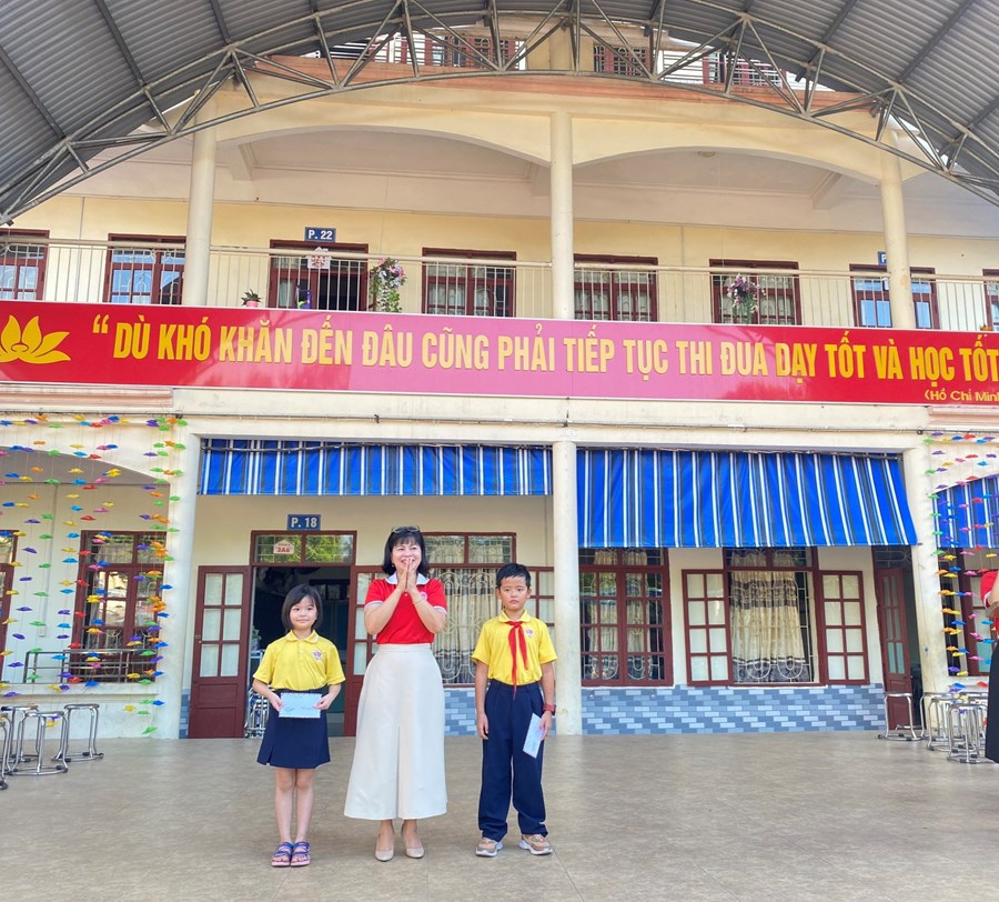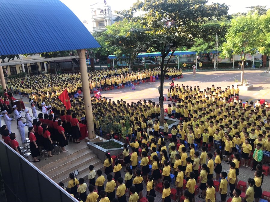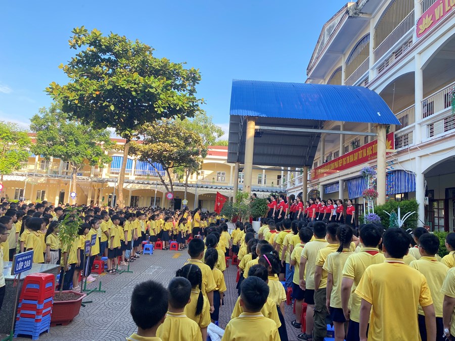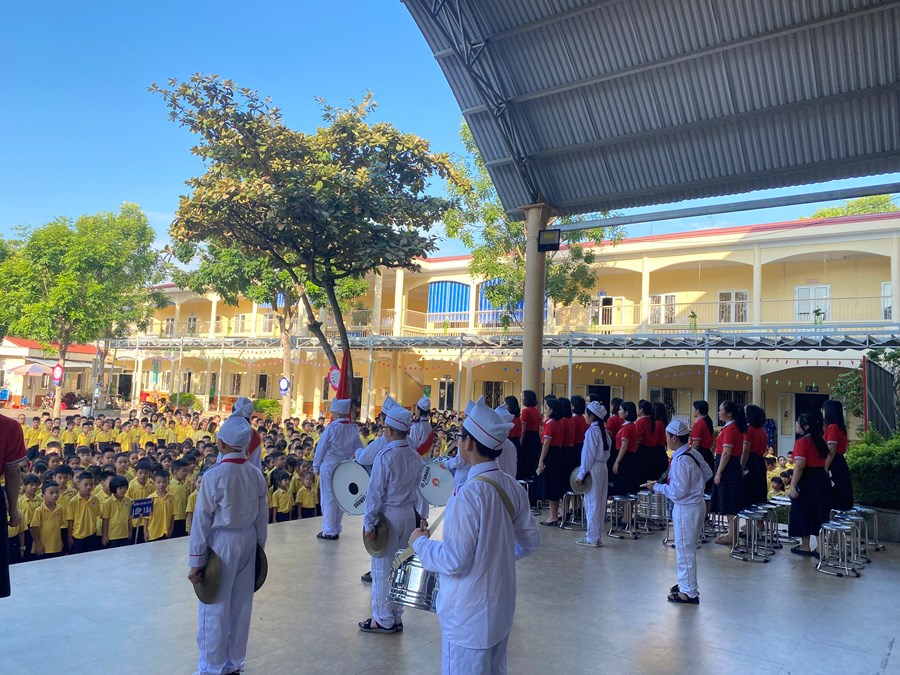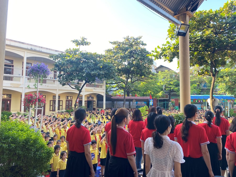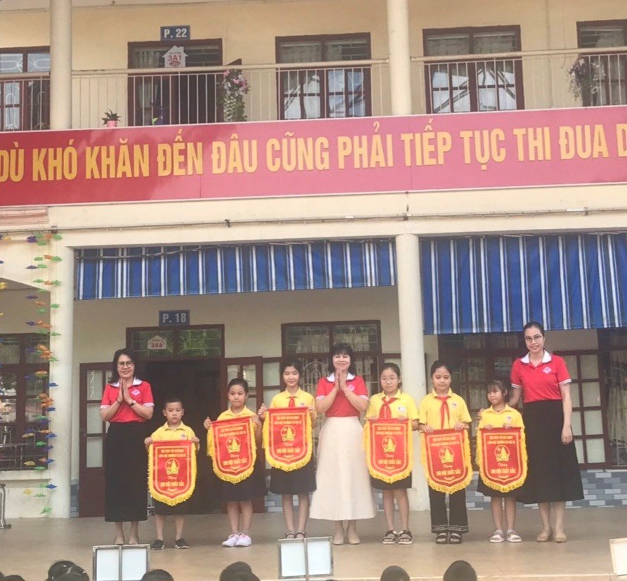 Tại buổi lễ chào cờ, cô giáo Nguyễn Thị Phương - Hiệu trưởng nhà trường đã khen tặng 2 em HS đã xuất sắc mang lại thành tích cho cá nhân và nhà trường: em Nguyễn Đức Nguyên - lớp 4A9 đạt huy chương Bạc, huy chương Đồng môn bơi tại hội khoẻ Phù đổng Thành phố; em Ngọc Diệp - lớp 2A2 đạt giải Nhất hội thi “Thiếu nhi dẫn chương trình” Thành phố năm 2023. Cô giáo Đinh Thị Hằng cũng tuyên dương những em học sinh tích cực tham gia múa, hát chào mừng Hội nghị Hai tốt của quận và những em học sinh tích cực tham gia thi thể dục thể thao tại Hội khỏe Phù Đổng cấp quận.