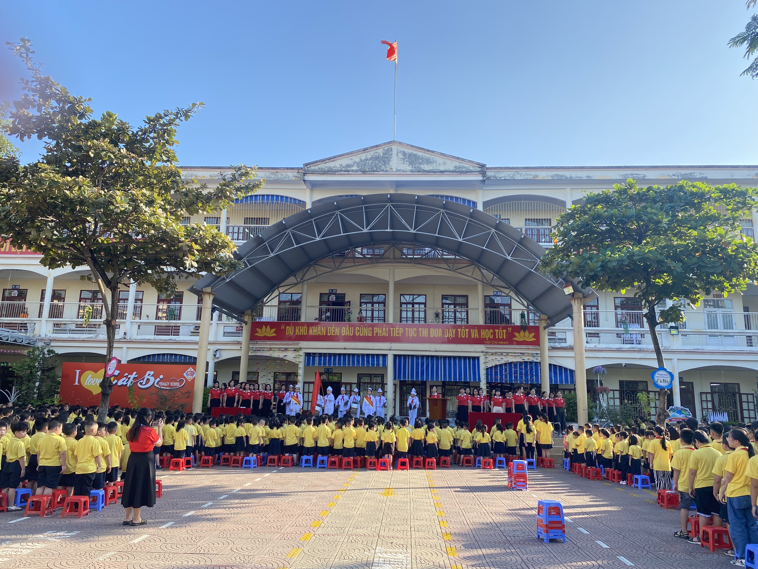 Sáng thứ 2 ngày 6 tháng 11 năm 2023, trường Tiểu học Cát Bi tổ chức chào cờ tháng 11 năm 2023. Về dự Lễ chào cờ có đ/c Nguyễn Thị Phương – Hiệu trưởng nhà trường; đ/c Nguyễn Thị Hà Giang và đ/c Trần Thị Minh Ngọc - Phó Hiệu trưởng cùng các đ/c GV-NV toàn trường và hơn 1500 học sinh.