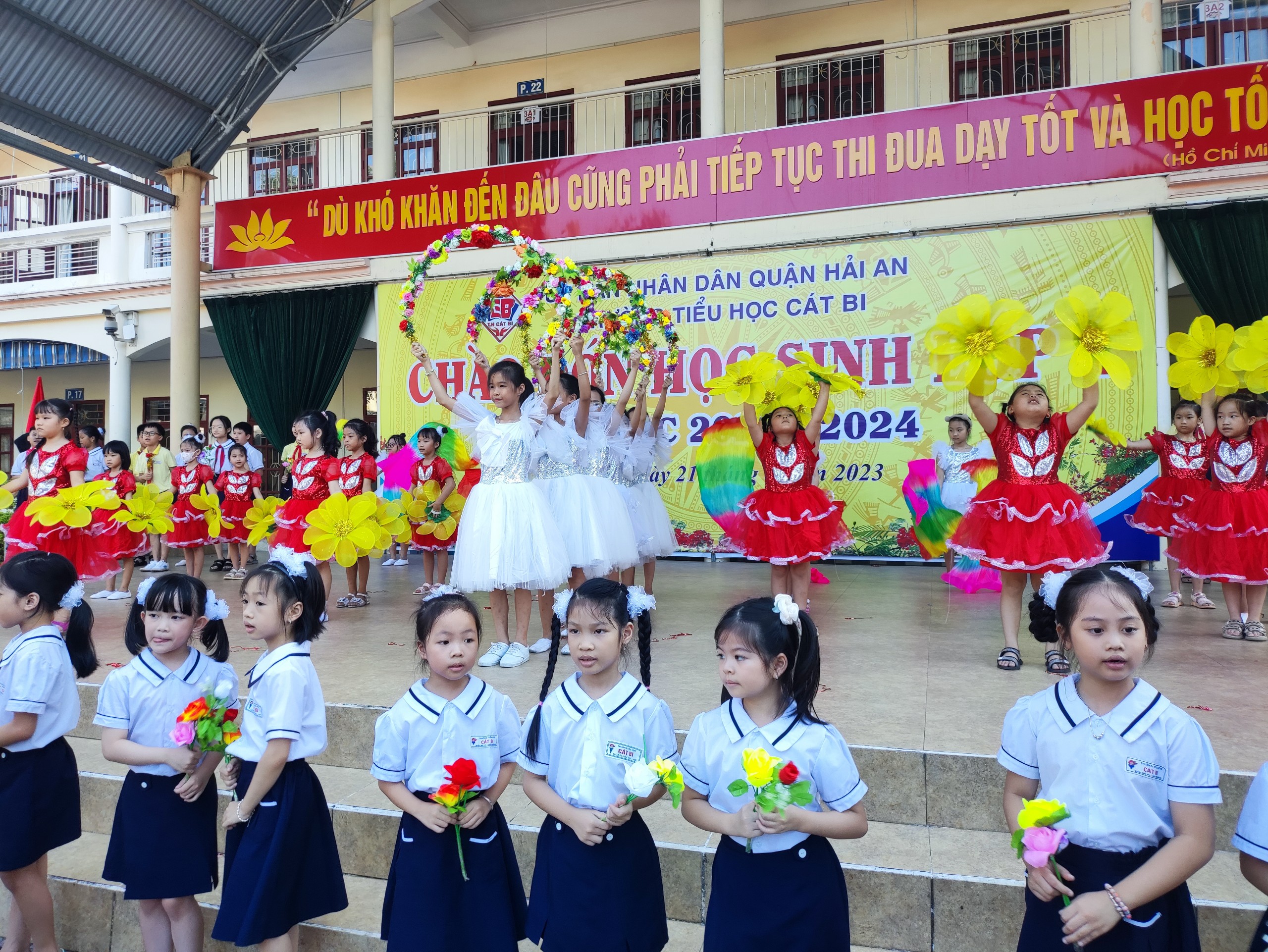 Sáng sớm ngày 31/8, trường Tiểu học Cát Bi đã khẩn trương thực hiện buổi tổng duyệt chuẩn bị cho Lễ khai giảng năm học mới 2023 - 2024. Các em học sinh đã có mặt từ rất sớm để tham gia buổi tổng duyệt.