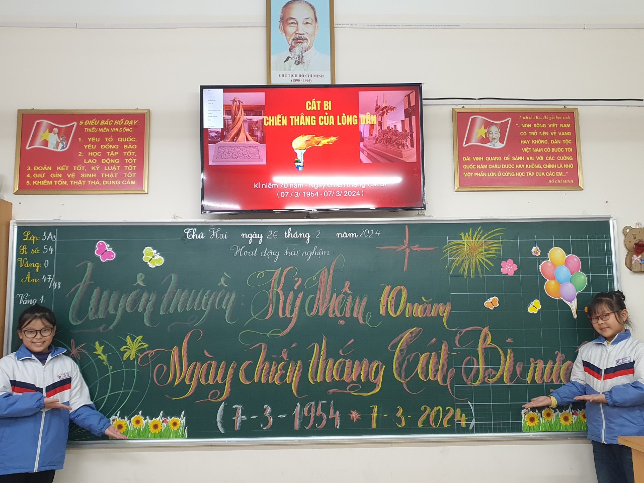 Thực hiện Kế hoạch tổ chức các hoạt động tuyên truyền kỷ niệm 70 năm Chiến thắng Cát Bi (07/3/1954 - 07/3/2024) gắn với kỷ niệm 70 năm Chiến thắng Điện Biên Phủ (07/5/1954 - 07/5/2024); Công văn số 178 - CV/BTGQU ngày 16/02/2024 của Ban Tuyên giáo Quận uỷ về việc tuyên truyền kỷ niệm 70 năm Ngày Chiến thắng Cát Bi (07/3/1954 - 07/3/2024), Trường Tiểu học Cát tổ chức các hoạt động ý nghĩa nhằm kỉ niệm 70 năm ngày Chiến thắng Cát Bi.