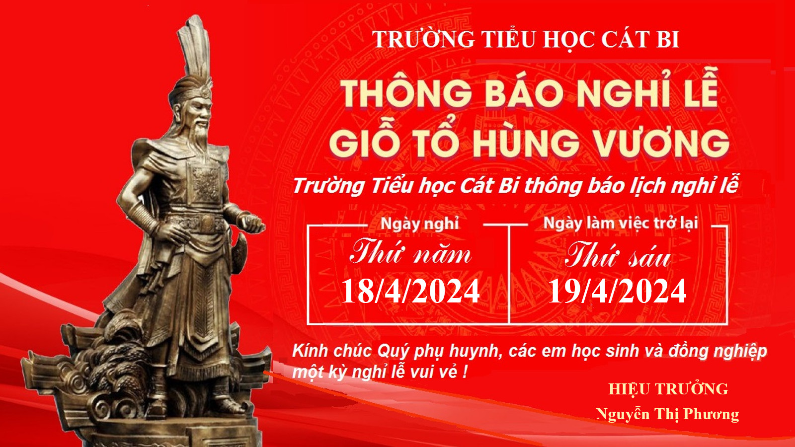 Trường Tiểu học Cát Bi thông báo lịch nghỉ lễ Giỗ Tổ Hùng Vương như sau: