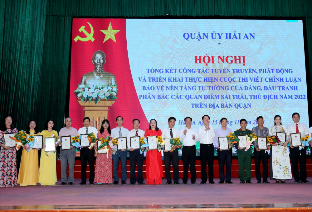 Thực hiện Kế hoạch số 111-KH/QU ngày 04/10/2022 của Ban Thường vụ Quận ủy, chiều thứ ba – ngày 15/11/2022, Quận ủy Hải An tổ chức Hội nghị tổng kết công tác tuyên truyền, phát động, hưởng ứng và triển khai cuộc thi viết chính luận về bảo vệ nền tảng tư tưởng của Đảng, đấu tranh phản bác các quan điểm sai trái, thù địch năm 2022 trên địa bàn quận.