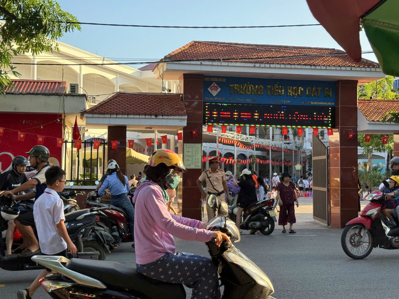 Từ 6h30’ sáng, các chú công an trực tiếp có mặt tại cổng trường Tiểu học Cát Bi để hướng dẫn phụ huynh đưa đón con em, tránh tình trạng ùn tắc và va chạm giao thông. Lực lượng công an thường xuyên nhắc nhở, xử lý các trường hợp dừng đỗ xe sai quy định, đồng thời ngăn ngừa các nguy cơ gây mất an ninh. Thông qua hoạt động tuyên truyền trực tiếp và các buổi ngoại khóa, các chú công an giao thông đã tuyên truyền tới học sinh, phụ huynh và giáo viên về văn hóa và ý thức khi tham gia giao thông. Sự có mặt của lực lượng Công an Giao thông trước cổng trường đã tạo nên hình ảnh đẹp, mang lại cảm giác yên tâm cho phụ huynh, học sinh và giáo viên. Hoạt động này không chỉ góp phần bảo đảm an toàn mà còn xây dựng thói quen văn minh khi tham gia giao thông cho cộng đồng.