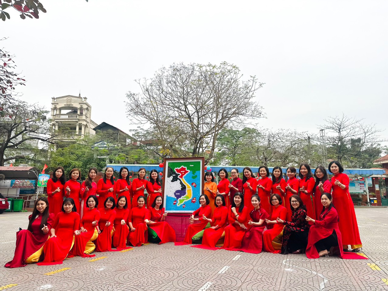 Một số hình ảnh của CB-GV-NV nữ của trường Tiểu học Cát Bi với trang phục áo dài truyền thống: