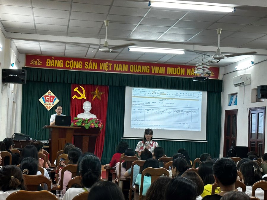 Về dự với buổi tập huấn có đ/c Nguyễn Thị Mai Thoa, đ/c Vũ Thị Thao - Chuyên viên Phòng GD&ĐT và cán bộ Trung tâm y tế quận Hải An cùng các đ/c Phó Hiệu trưởng, nhân viên phụ trách công tác y tế trường học của các cơ sở giáo dục mầm non, tiểu học.