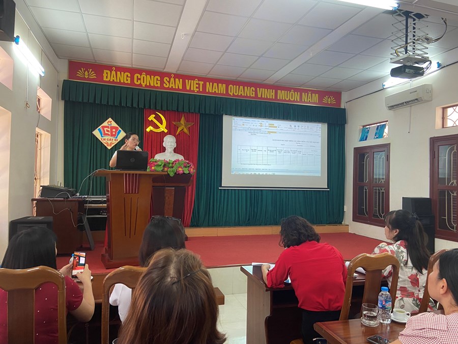 Tại buổi tập huấn, các đ/c Phó Hiệu trưởng và nhân viên phụ trách công tác y tế trường học của các cơ sở giáo dục mầm non, tiểu học đã được hướng dẫn cách rà soát, thu thập thông tin về tiền sử tiêm chủng của học sinh ở đối tượng tuyển sinh mới năm học 2023-2024.