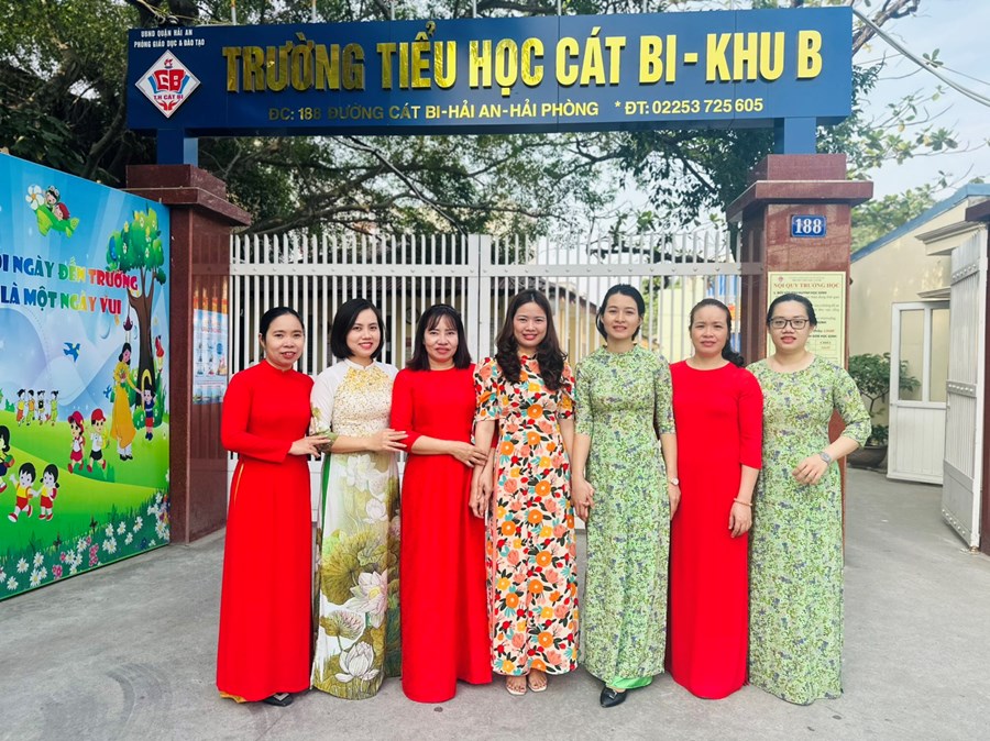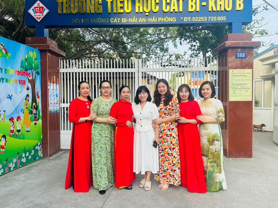 Hưởng ứng “Tuần lễ Áo dài” chào mừng Đại hội XV Công đoàn Thành phố (ngày 11,12/10/2023) từ ngày 10/10/2023 đến ngày 20/10/2023 chào mừng Đại hội XV Công đoàn thành phố và hưởng ứng sự kiện tôn vinh vẻ đẹp Áo dài Việt Nam nhân dịp kỷ niệm Ngày thành lập Hội liên hiệp Phụ nữ Việt Nam 20/10, cán bộ - giáo viên - nhân viên trường Tiểu học Cát Bi đã mặc áo dài đến trường vào các ngày từ 16/10 đến 20/10.